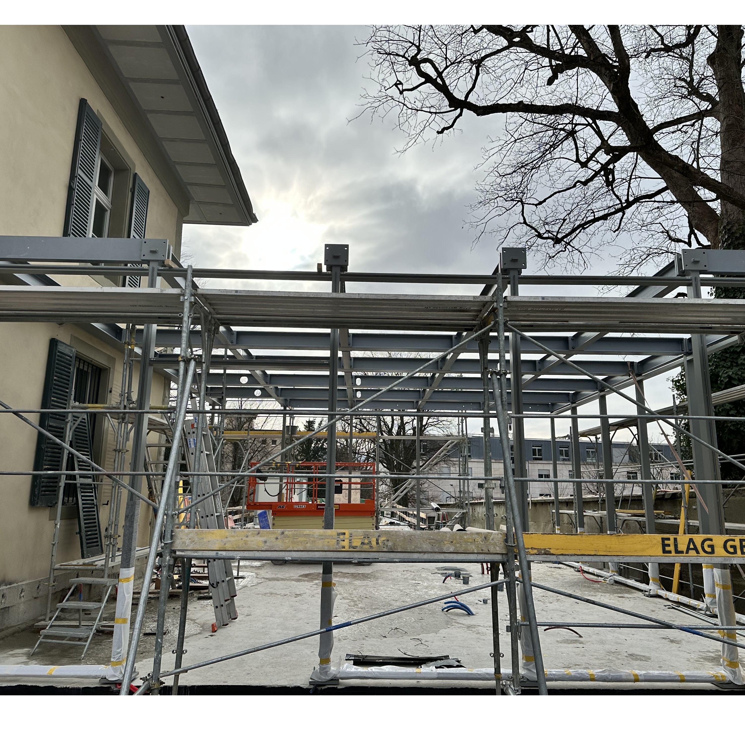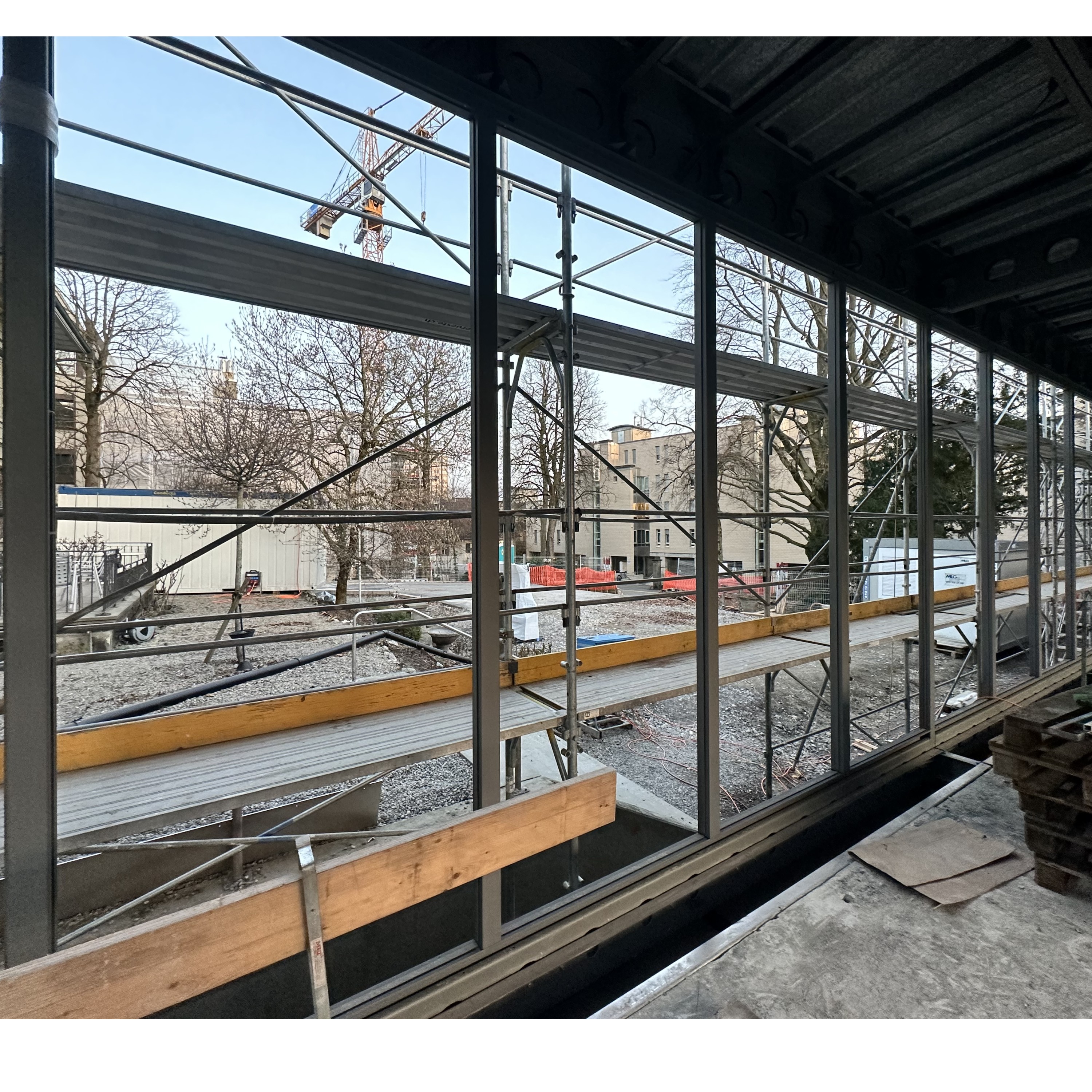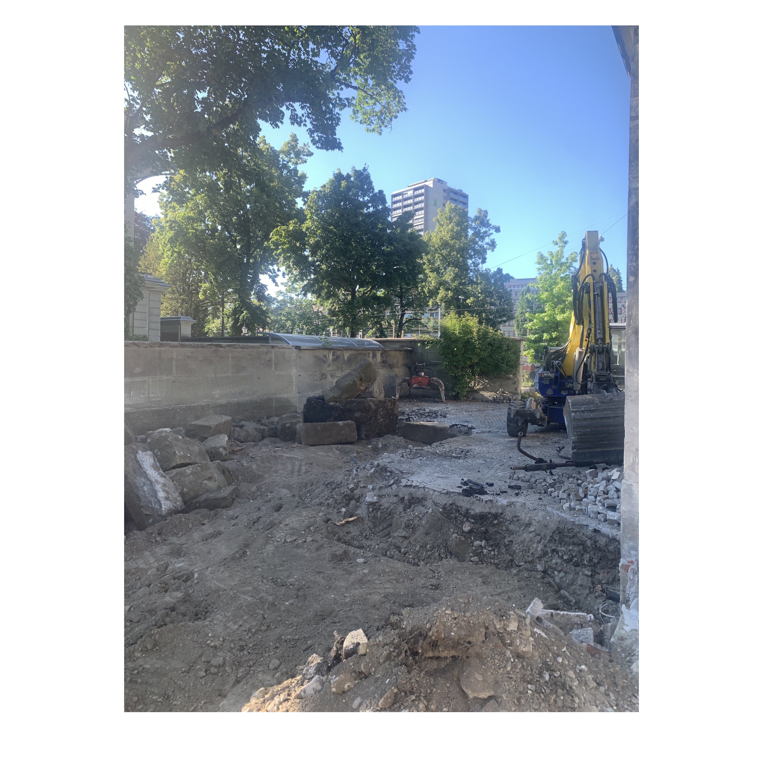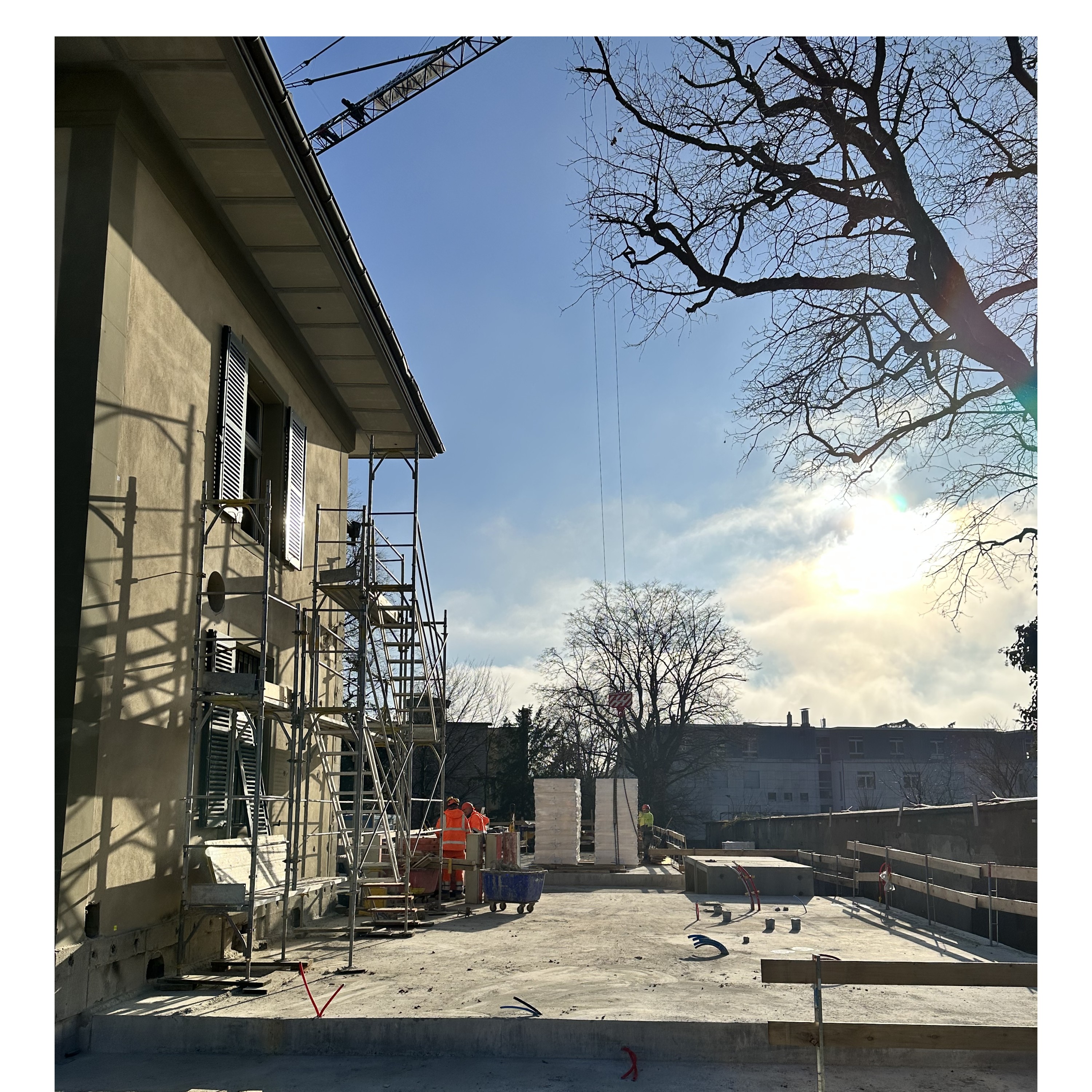 La déconstruction du pavillon Haller va d'abord commencer. L'entreprise de construction métallique Stoller de Belp, spécialisée dans les constructions de Haller, va maintenant rénover et renforcer le pavillon dans ses halles, avant de le remonter à la fin de l'année sur le sous-sol qui sera alors bétonné.