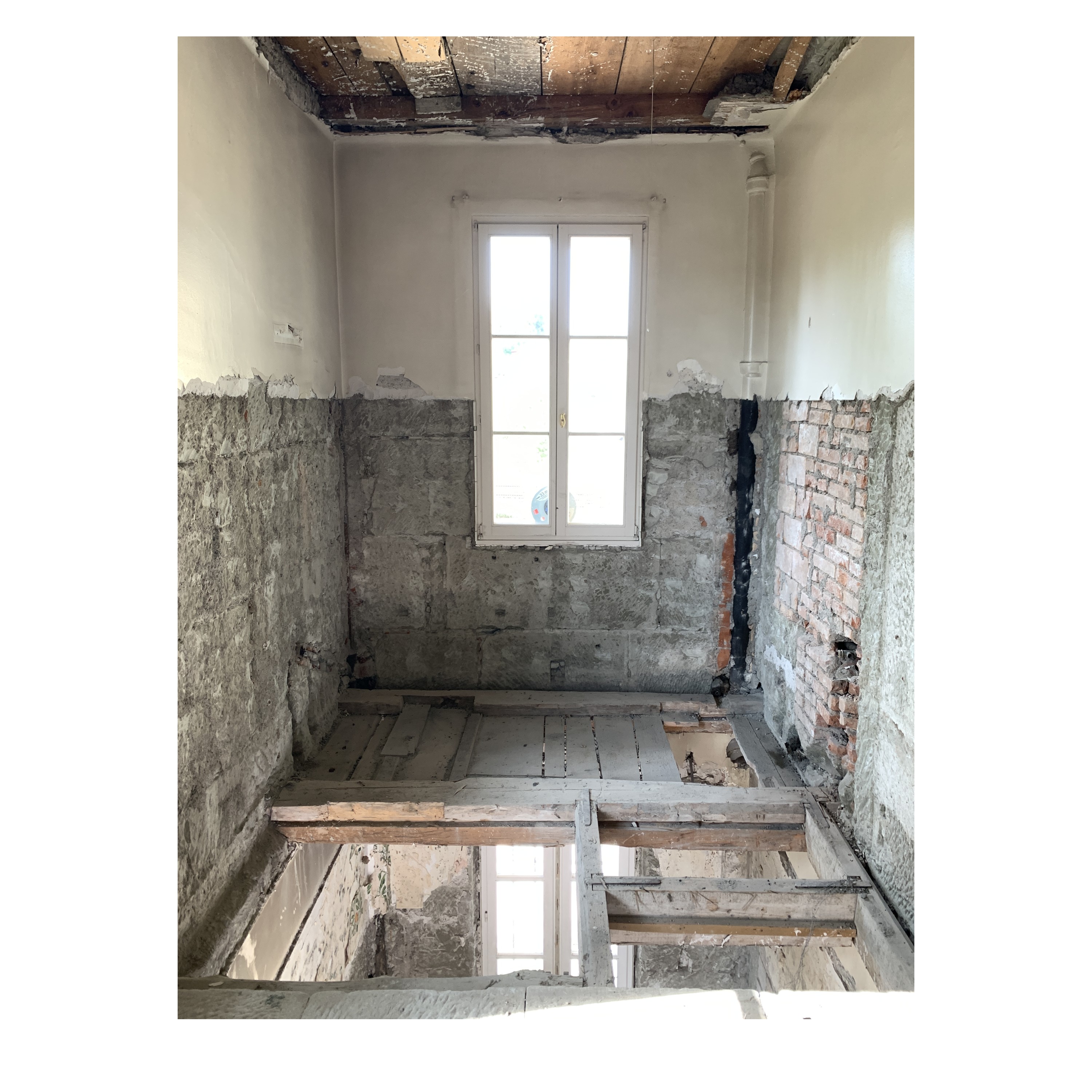 Le sol du pavillon d'entrée est terminé. La future cage d'ascenseur est prête