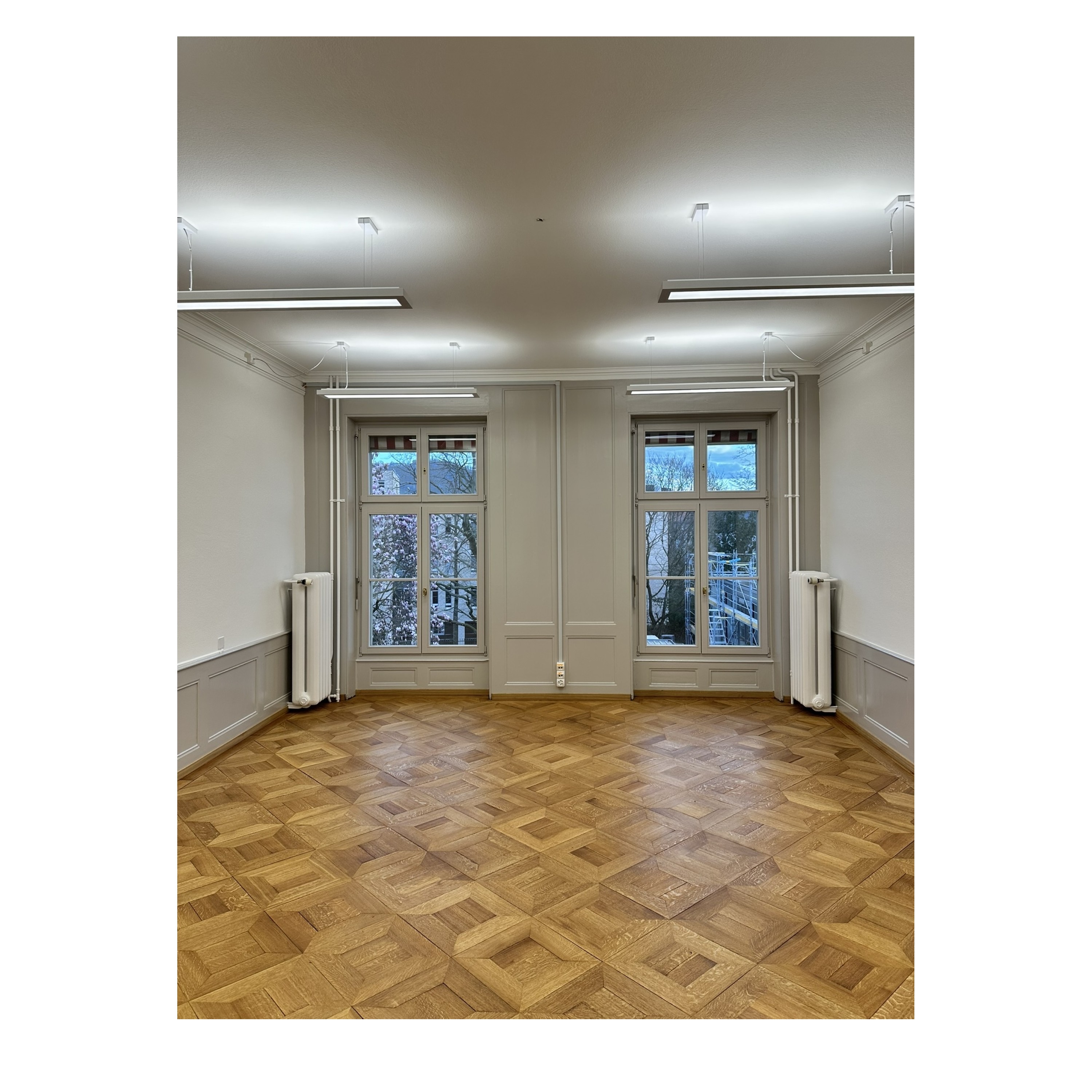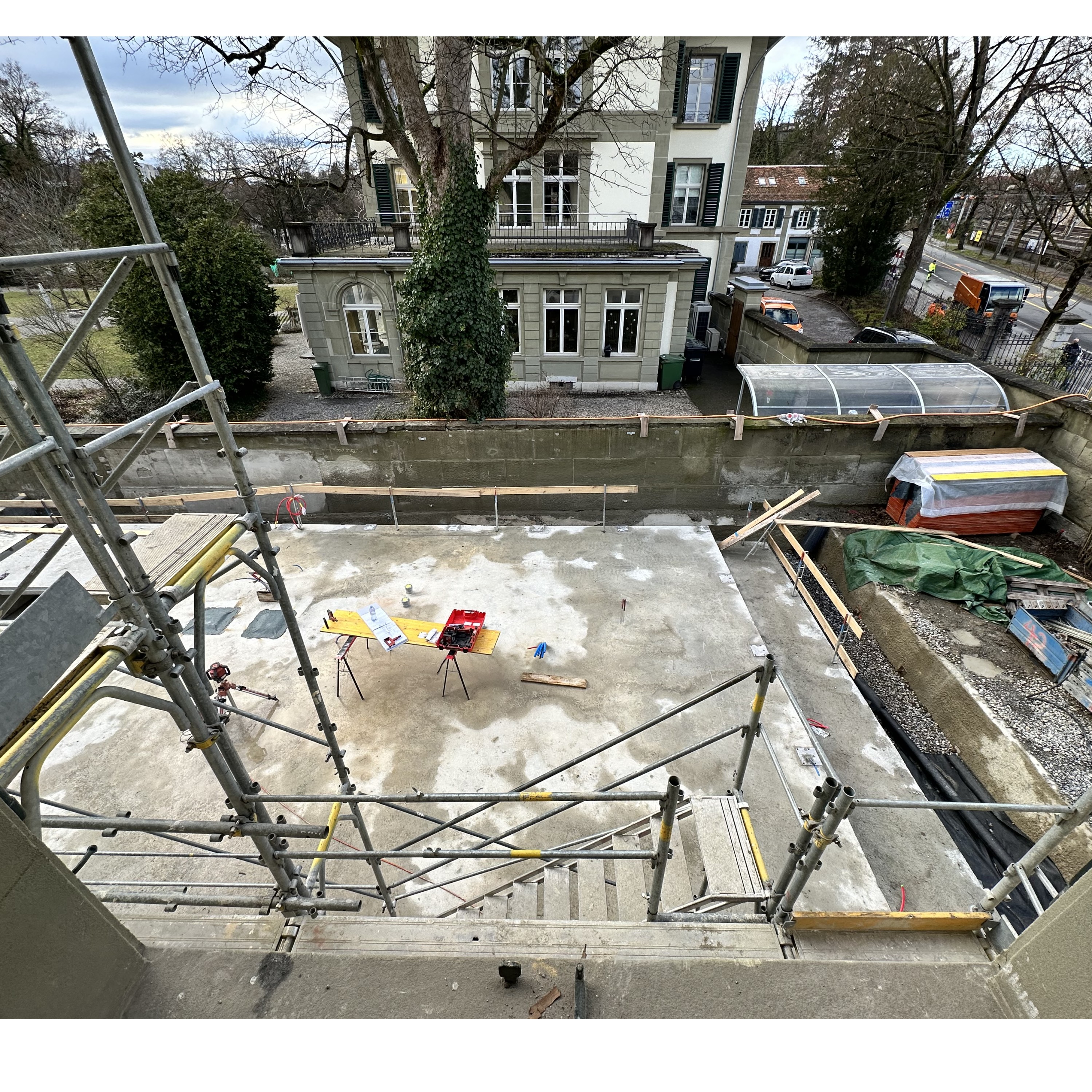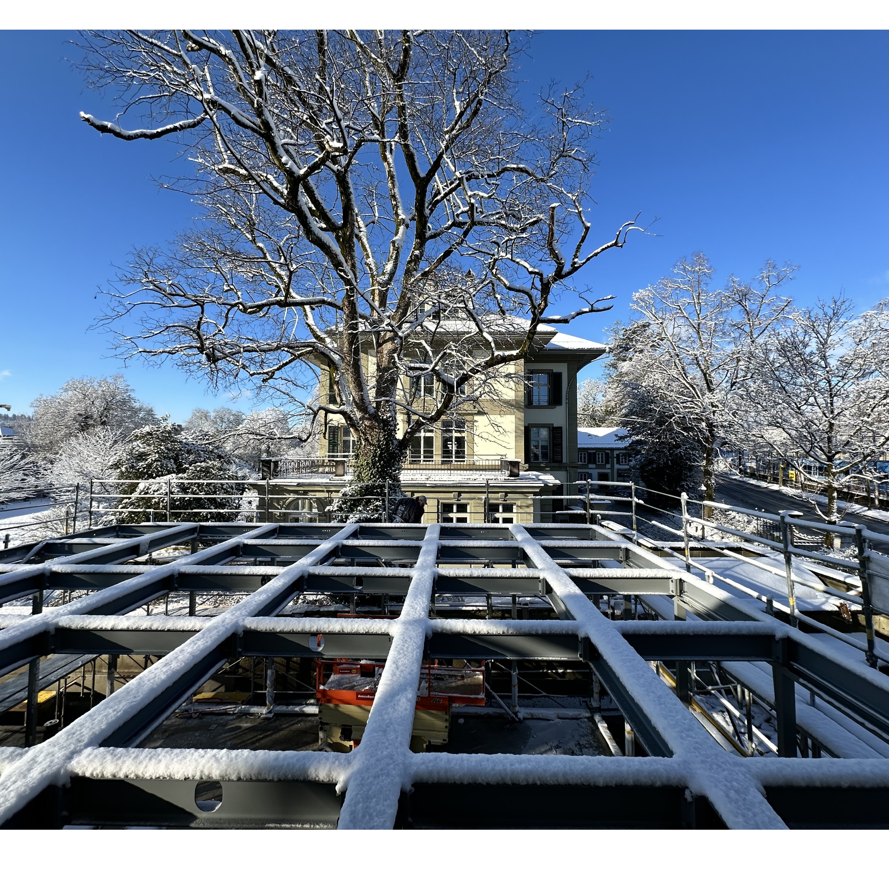 Le projet définitif a ensuite été élaboré en étroite concertation avec le service bernois des monuments historiques. Le pavillon de Fritz Haller doit être protégé à l'avenir. Avec la villa Thurmau, ce sont donc deux bâtiments protégés qui seront réunis sur un même terrain : un bâtiment du 19e siècle et une icône architecturale du 20e siècle. En raison de la pandémie, le projet a dû être mis en attente. En 2022, il a été développé et déposé officiellement en tant que demande de permis de construire. Le permis de construire a été délivré au printemps 2023, de sorte que la construction peut démarrer dans les délais. L'achèvement de l'extension est prévu pour fin mai 2024.