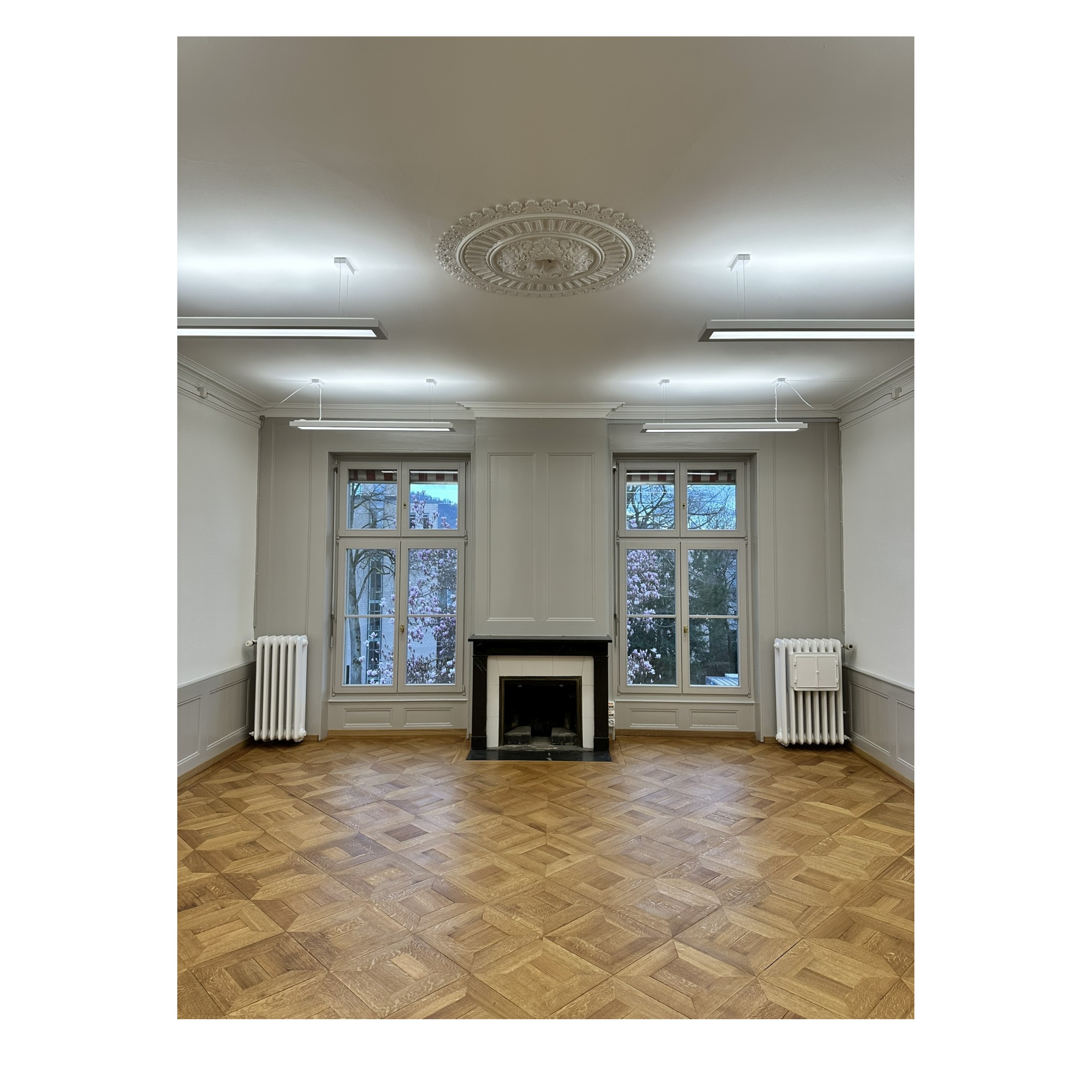 En 1979, la villa a été acquise par la galerie Kornfeld et agrandie par un pavillon du système de construction "Mini" de Fritz Haller/USM. Le pavillon a été conçu et construit en 1972 pour la légendaire "vente aux enchères Stoll" et reconstruit en 1981 sur le nouveau site.