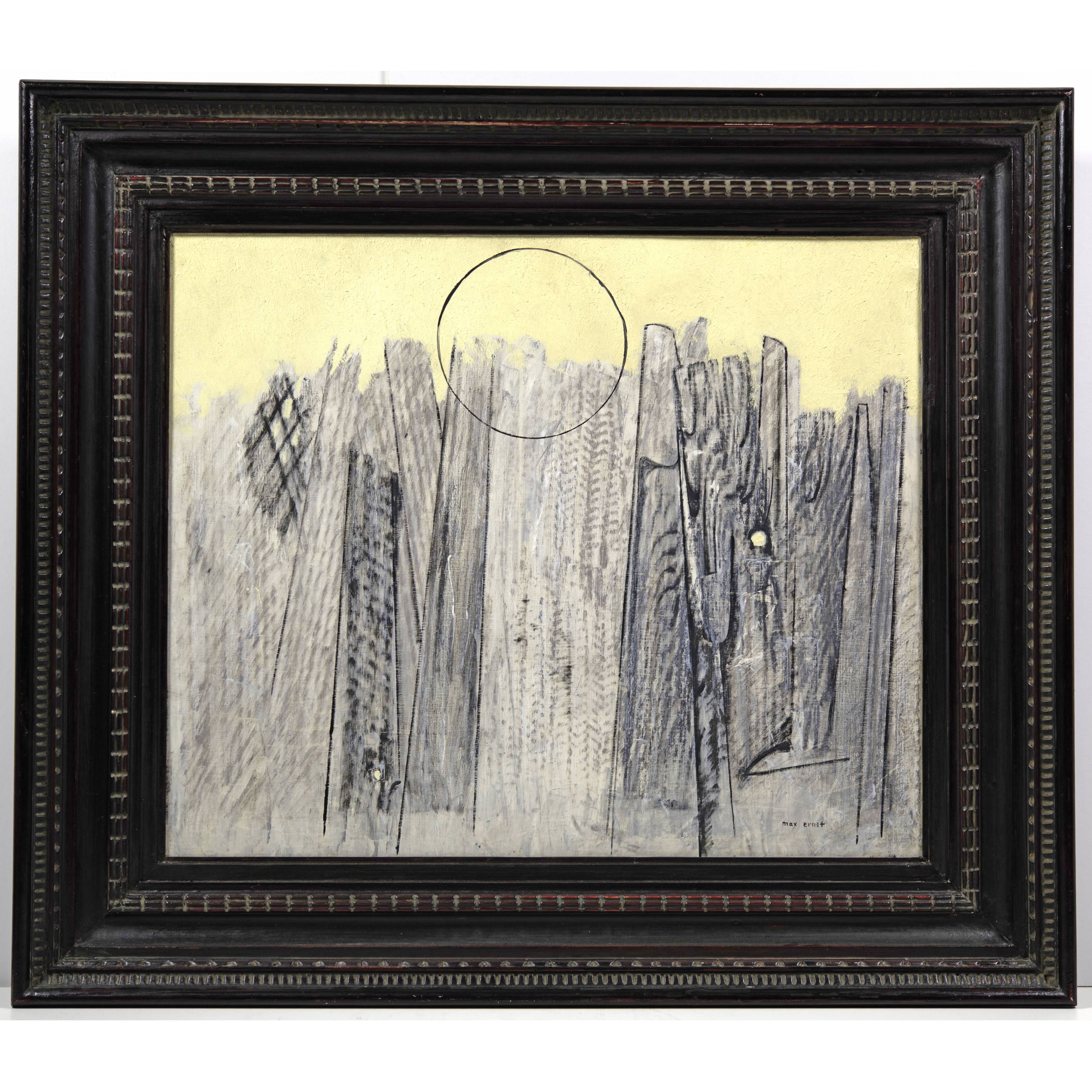 Immer schon an Naturphänomenen interessiert, bearbeitet Ernst das Thema Wald (Forêt) seit den 1920er Jahren. Mit der Entdeckung der Frottage, bieten sich ihm neue Möglichkeiten das Thema umzusetzen. Indem er verwitterte Holzbretter "abfrottiert", schafft er aus Holz materialisierte, stilisierte Bäume. Vertikal nebeneinander aufgereiht erwecken sie die Illusion eines Waldes. Das hier angebotene Gemälde ist eine der frühesten Forêt-Darstellungen, in dieser Manier geschaffen. Erstmals setzt er in dieser Serie auch einen Kreis als metaphorische Sonne sein. Mit einfachsten, illusionistischen Mitteln schafft der Künstler eine eindrückliche Komposition