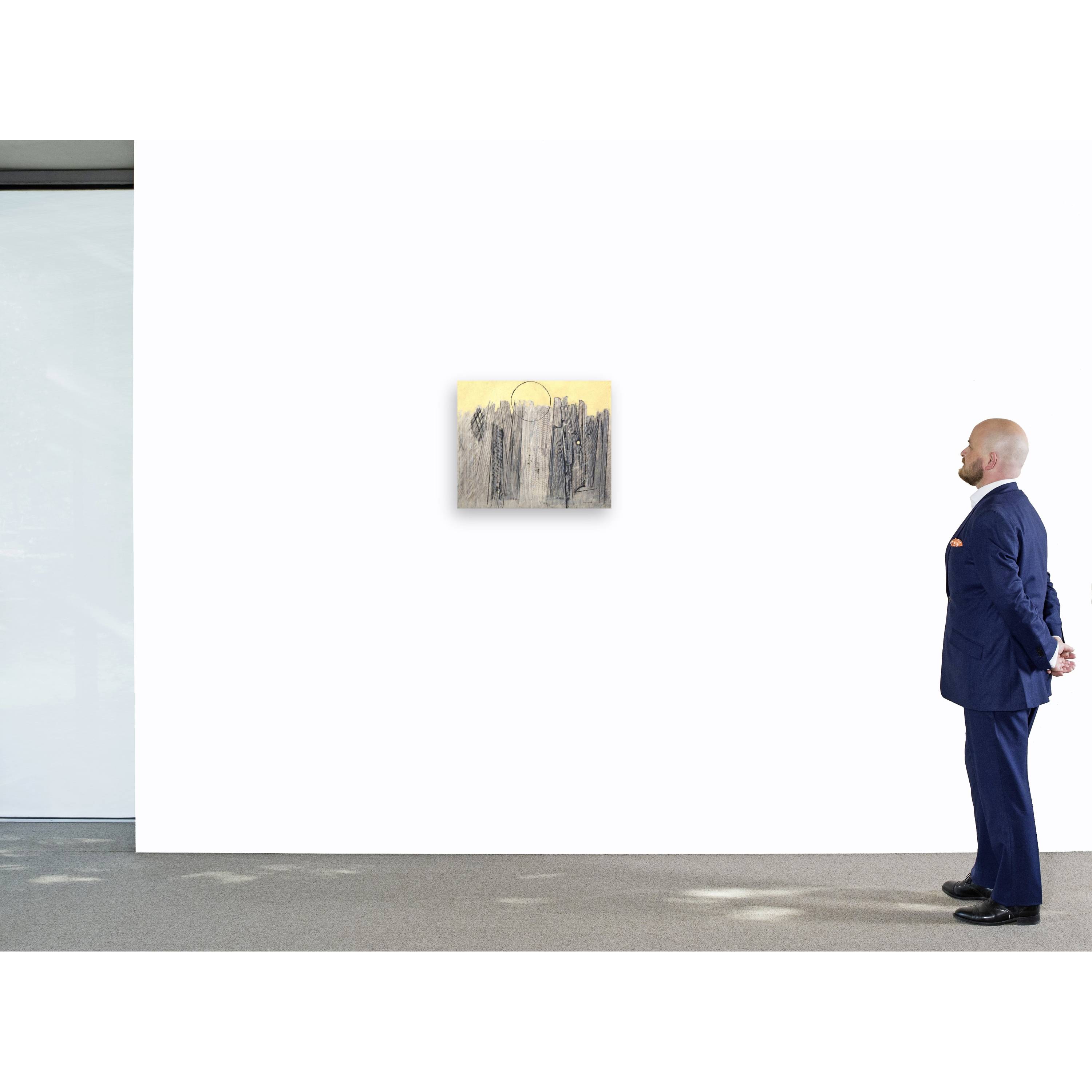 Always interested in natural phenomena, Ernst has worked on the theme of the forest (Forêt) since the 1920s. With the discovery of frottage, he was offered new possibilities to realise the theme. By "rubbing down" weathered wooden boards, he creates materialised, stylised trees out of wood. Lined up vertically next to each other, they create the illusion of a forest. The painting offered here is one of the earliest Forêt depictions, created in this manner. For the first time in this series he also uses a circle as a metaphorical sun. With the simplest, illusionistic means, the artist creates an impressive composition
