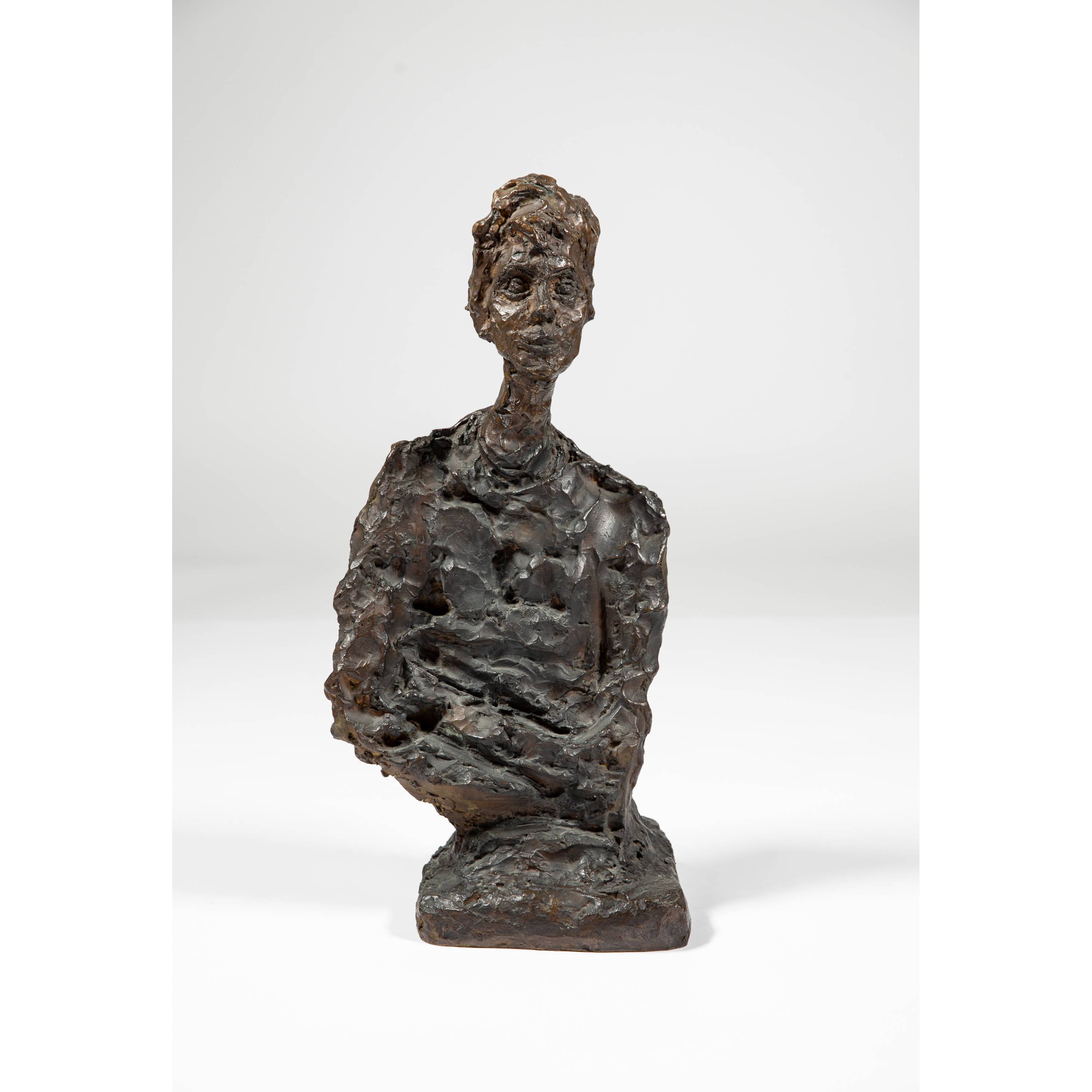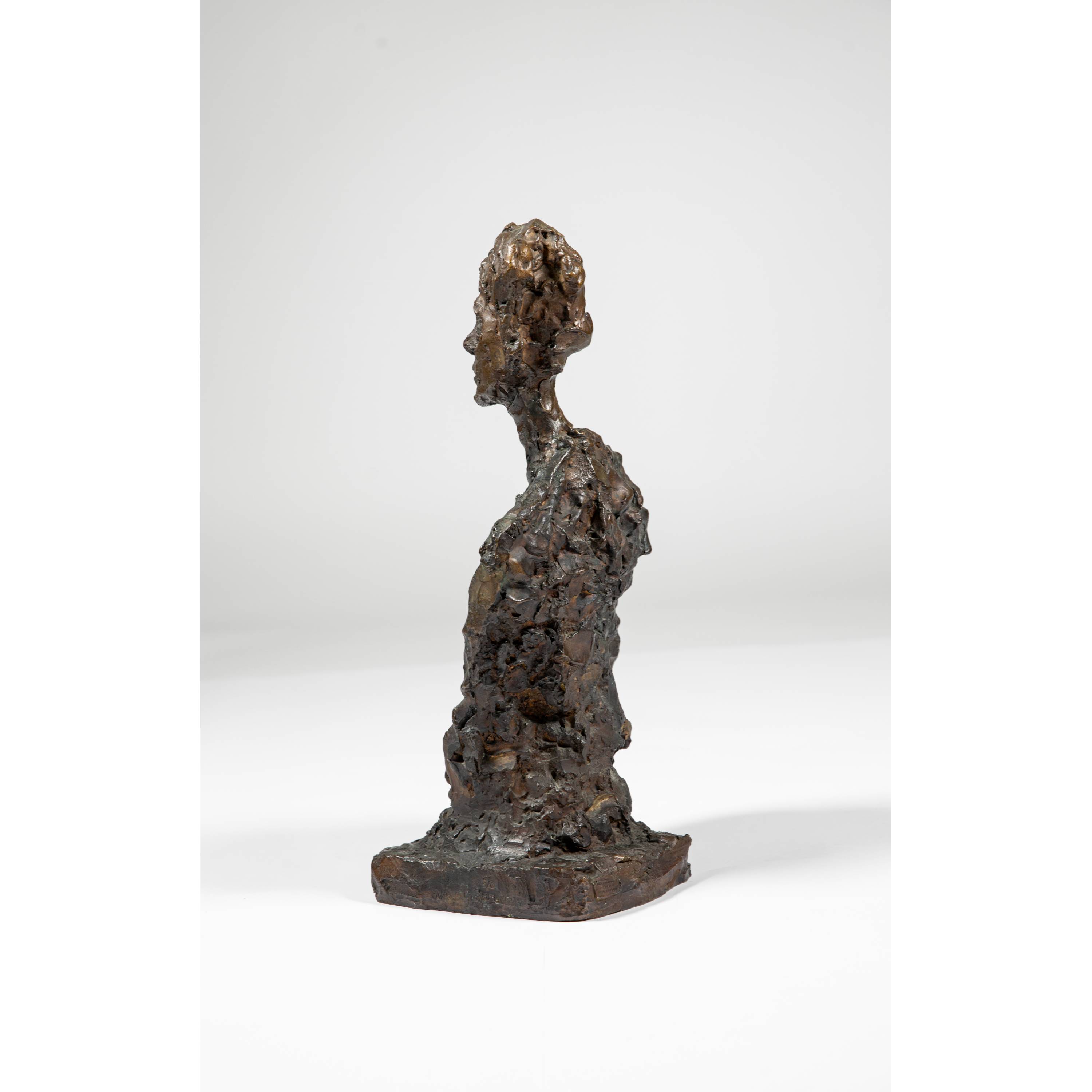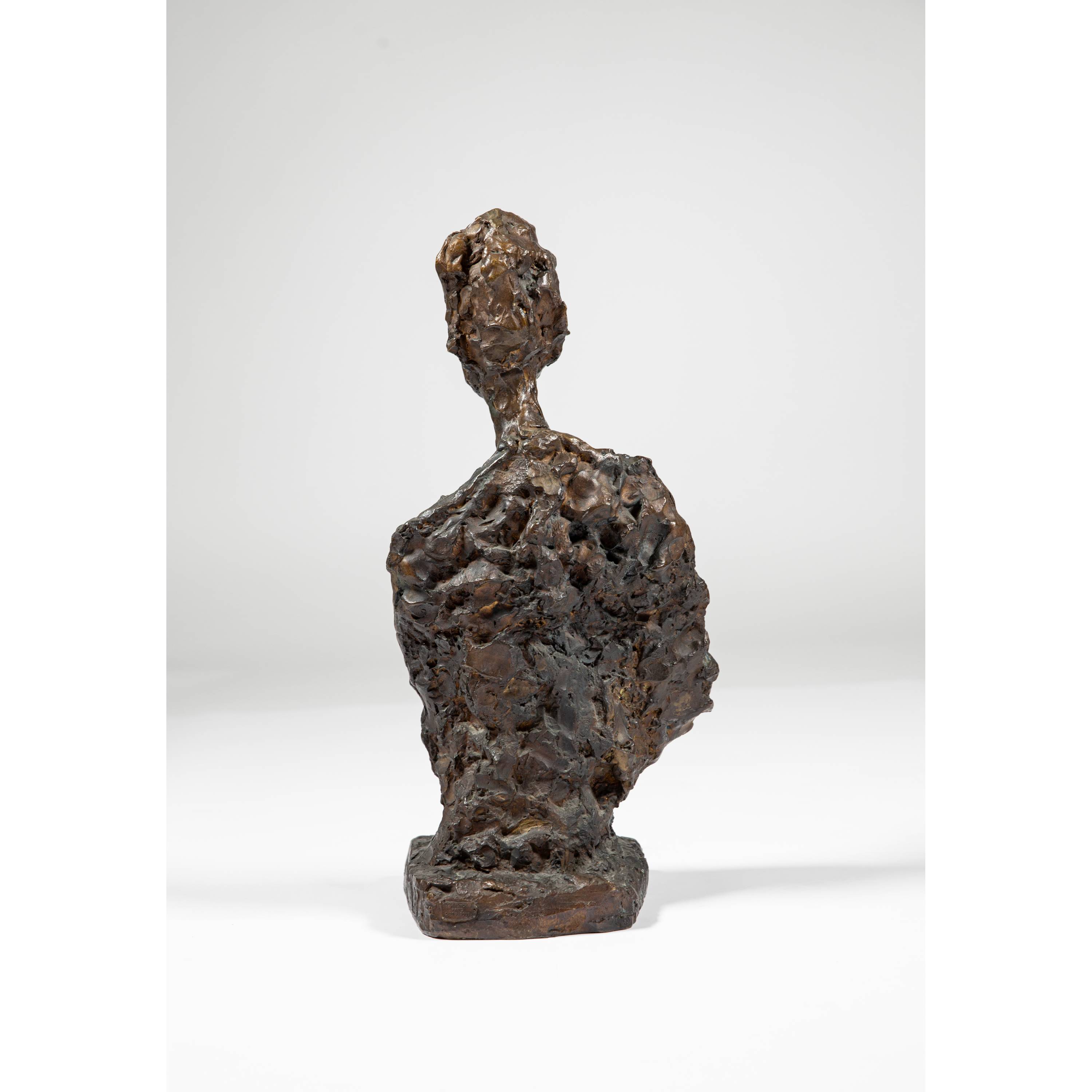 Gemäss Comité Giacometti, Paris, sind 1964 lediglich 4 Exemplare gegossen worden. In tadelloser Erhaltung mit brauner Patina. Minime Abreibungen der Patina an der Nase, dem Kopf und an der Schulter