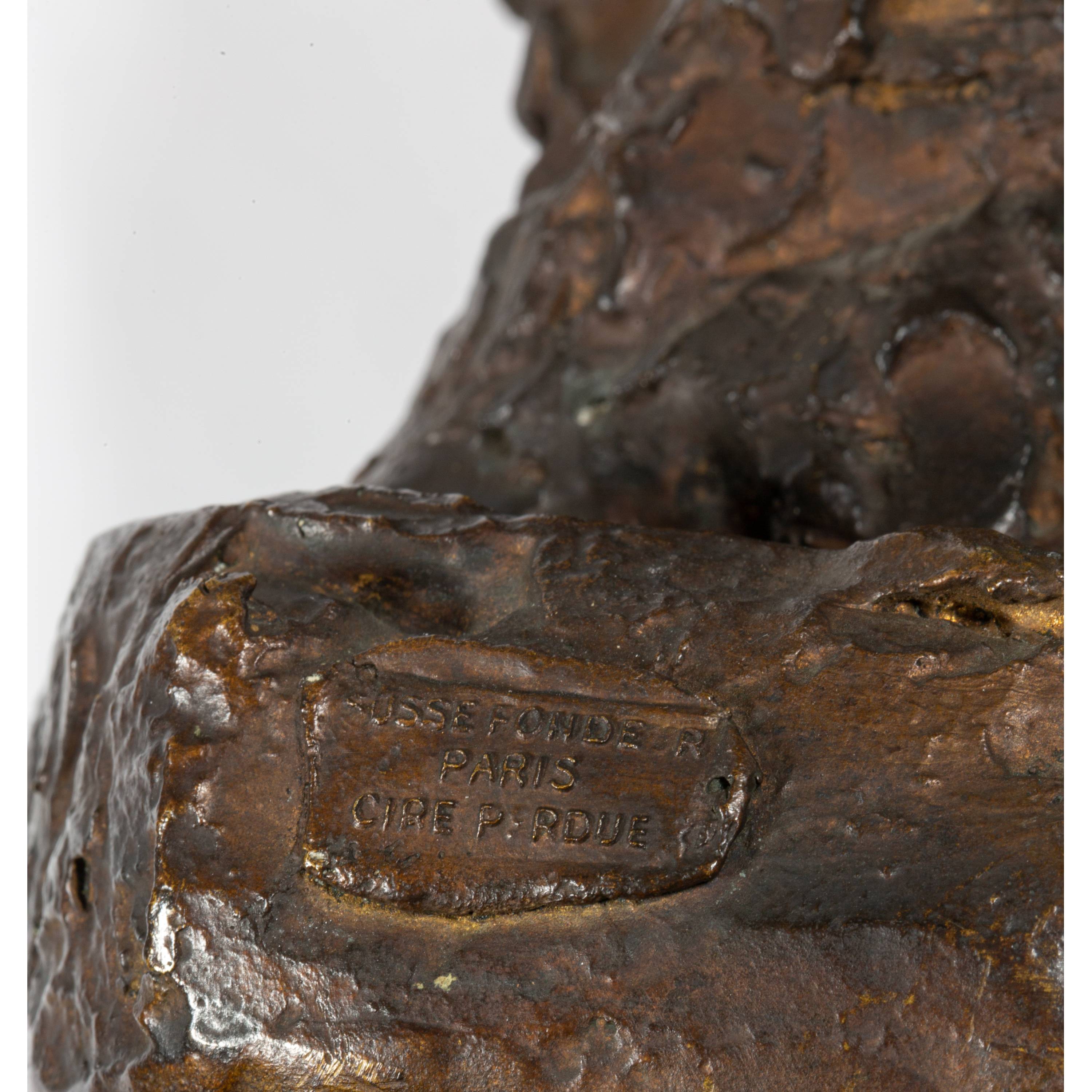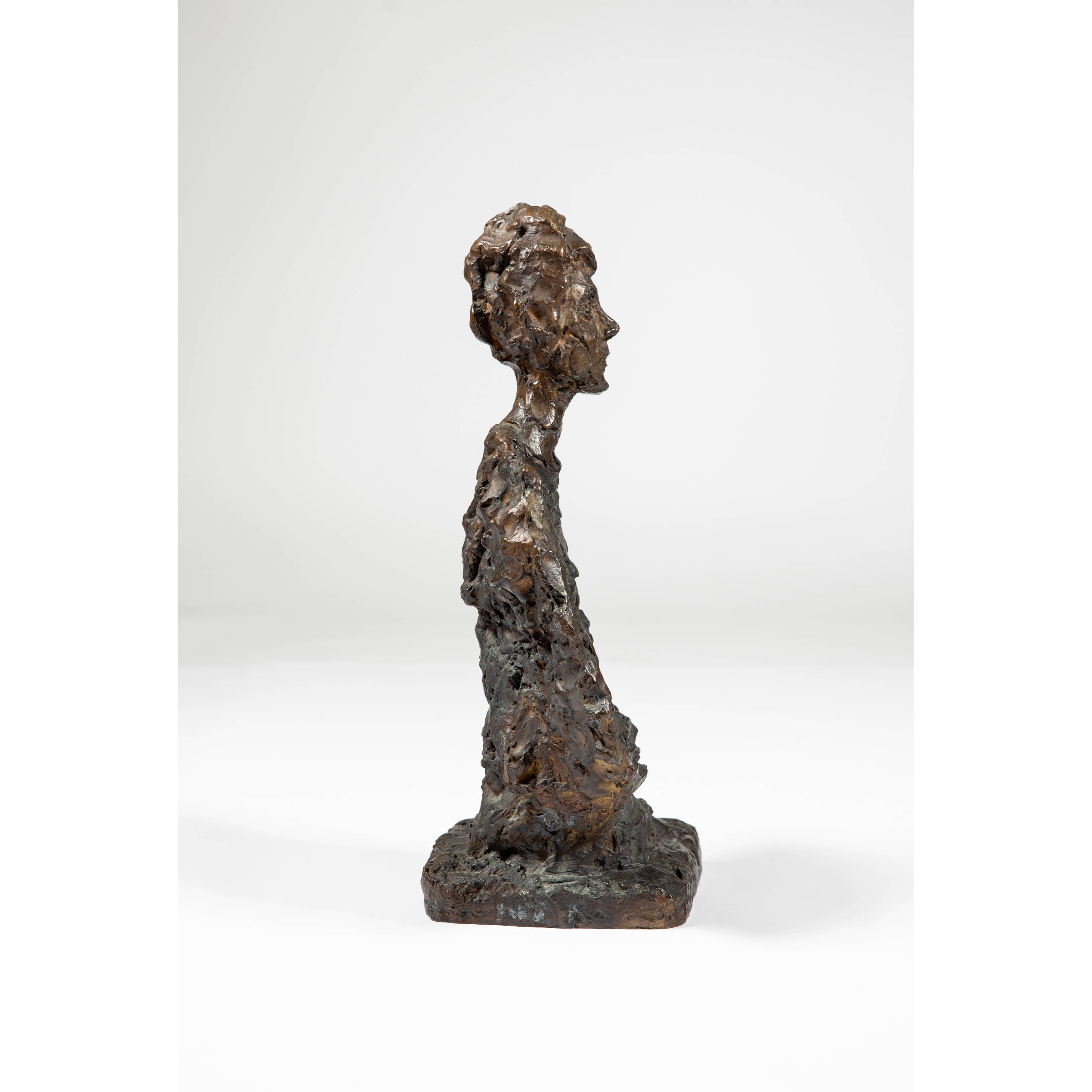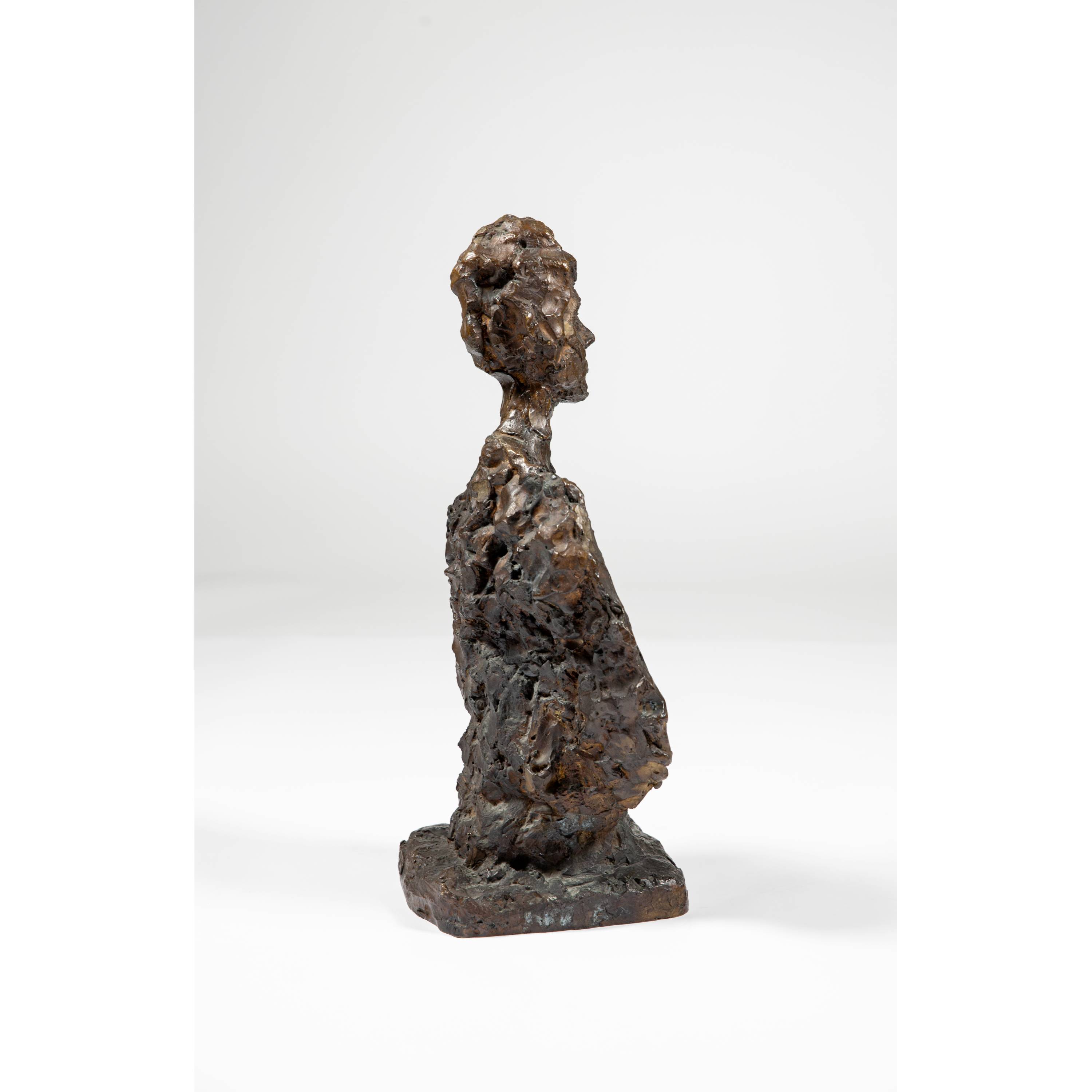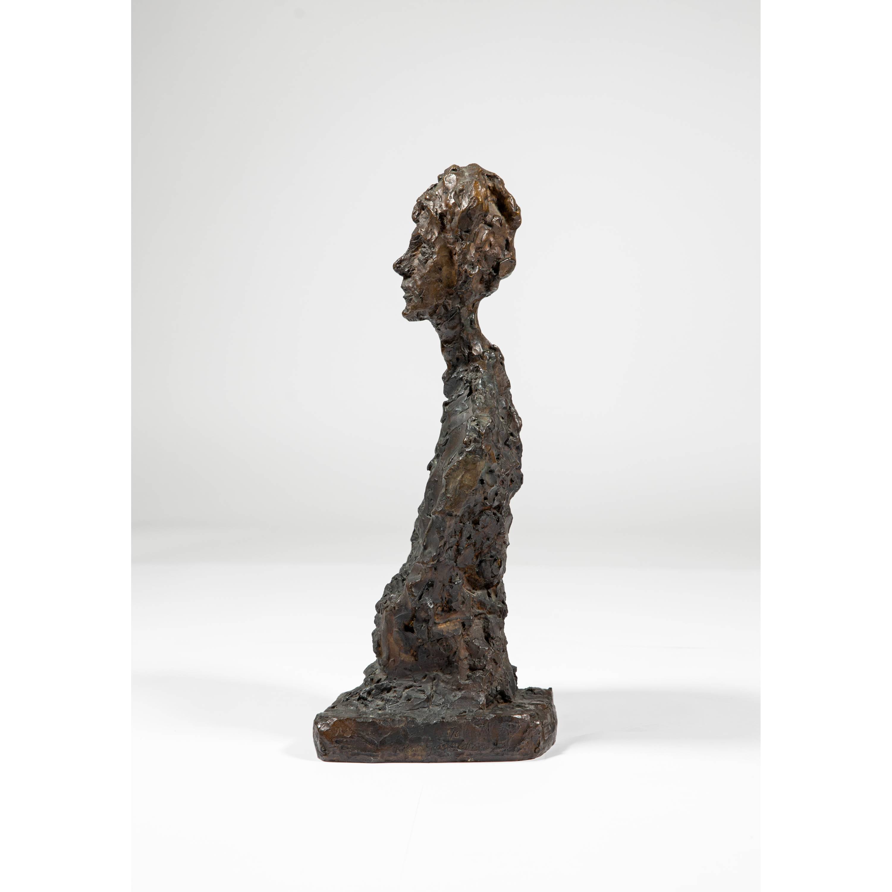 Gemäss Comité Giacometti, Paris, sind 1964 lediglich 4 Exemplare gegossen worden. In tadelloser Erhaltung mit brauner Patina. Minime Abreibungen der Patina an der Nase, dem Kopf und an der Schulter