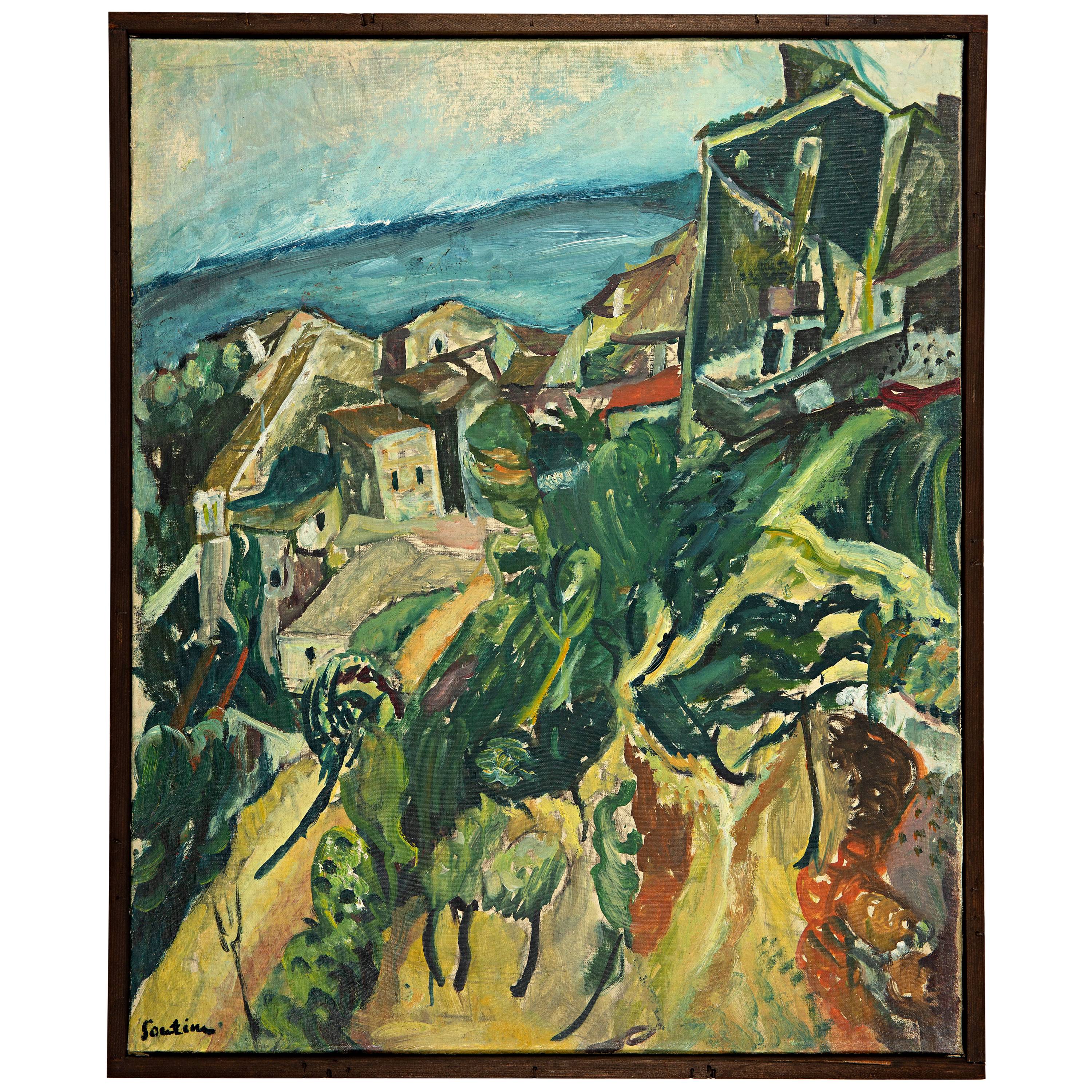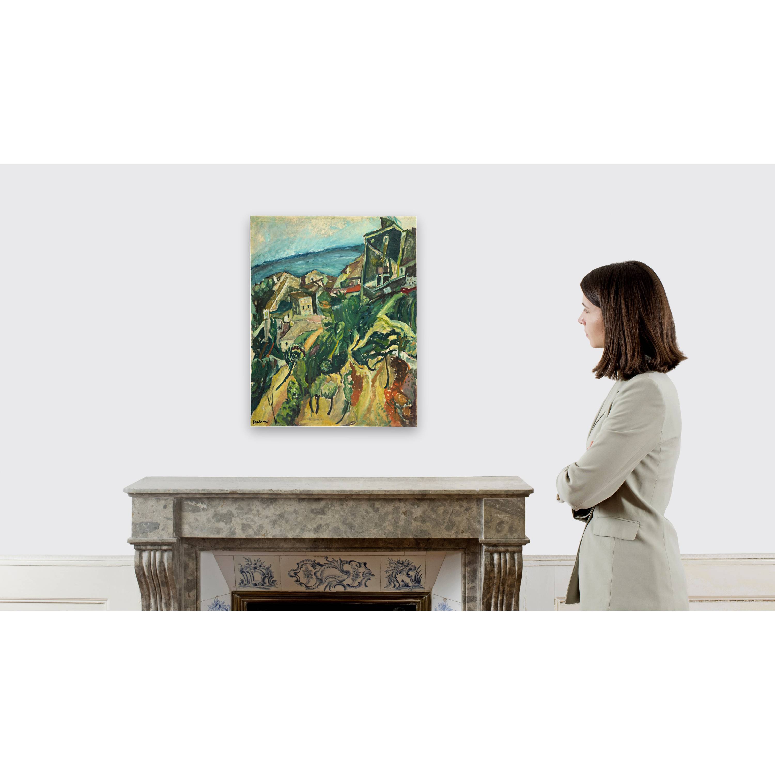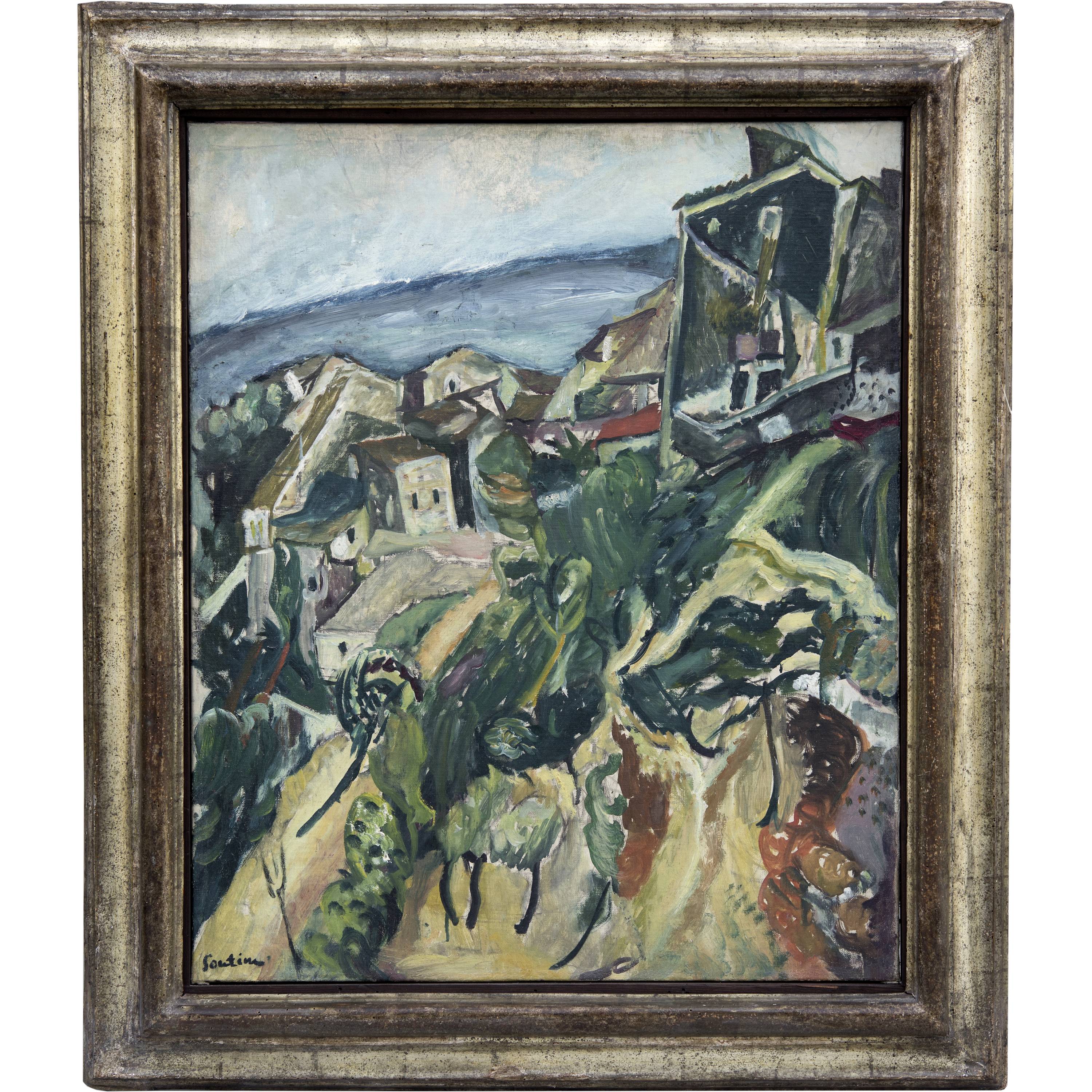 Chaïm Soutine first visited Cagnes-sur-Mer in the south of France in 1918, accompanied by his fellow artist Amedeo Modigliani and his Polish dealer Léopold Zborowski, who made this trip possible for him by selling his works to the Swedish collector Jonas Netter. This enabled them to escape the bombing of Paris by the Germans. The present work, which he painted on this trip, is a rich and expressive example of Soutine's most successful landscapes from this important period of his creative development. His colour palette becomes brighter and more luminous, no doubt due to the summer climate of the Midi. The view of the town is characterised by its winding roofs and gnarled vegetation. The mature landscapes of Cagnes are of an airy and buoyant quality