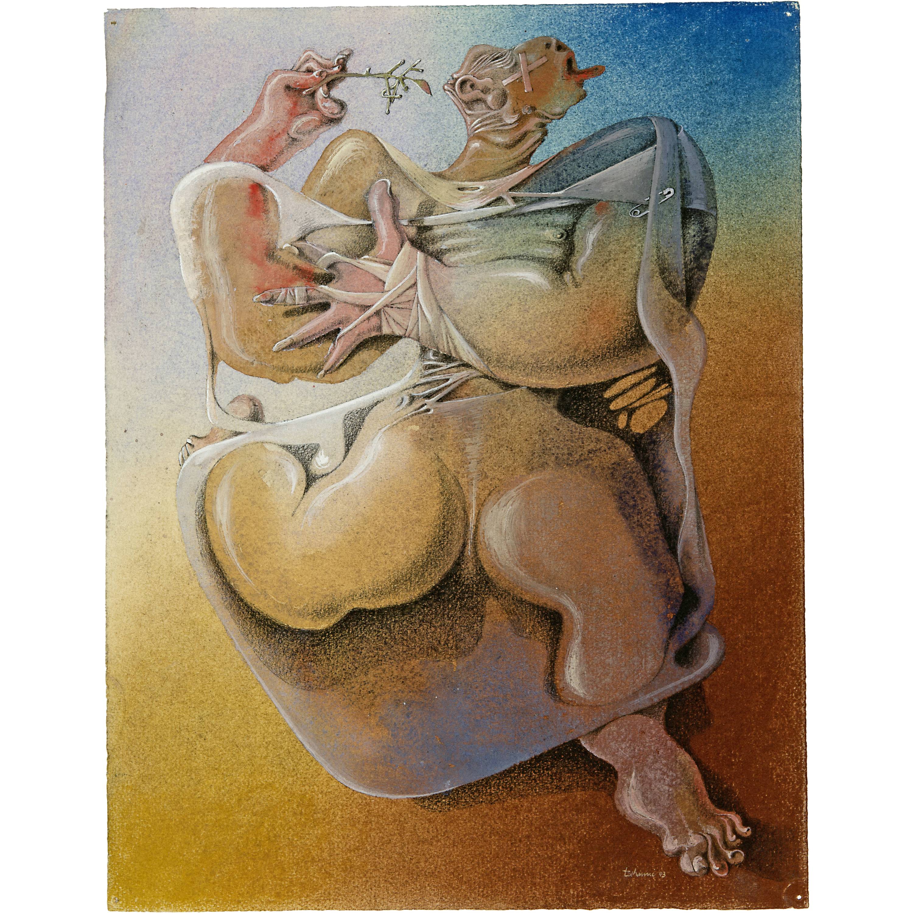 Das rückseitig vom Künstler als "unverkäuflich", weil ihm besonders wichtig, bezeichnete Werk ist ein wunderbares Beispiel einer surrealen Figurenkomposition