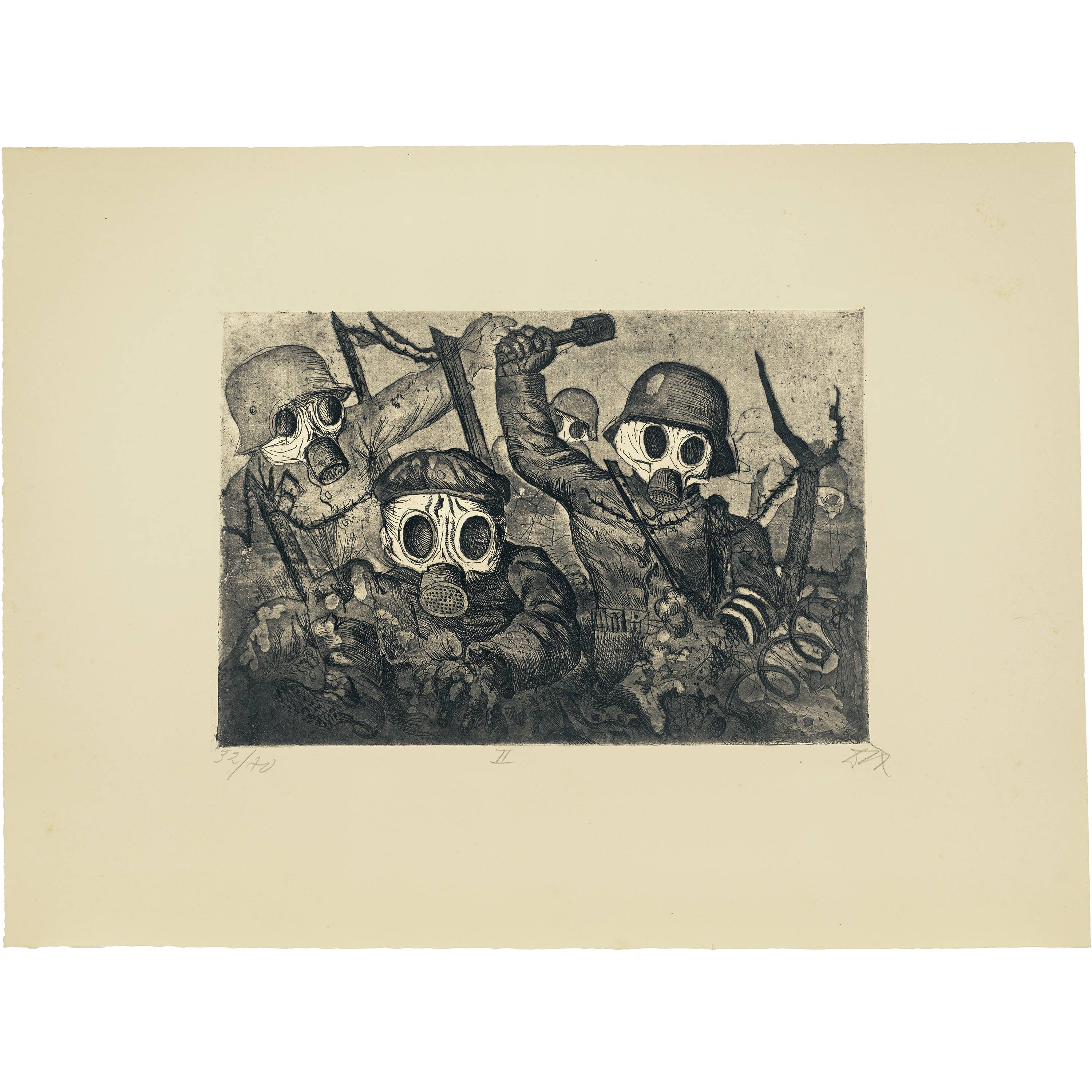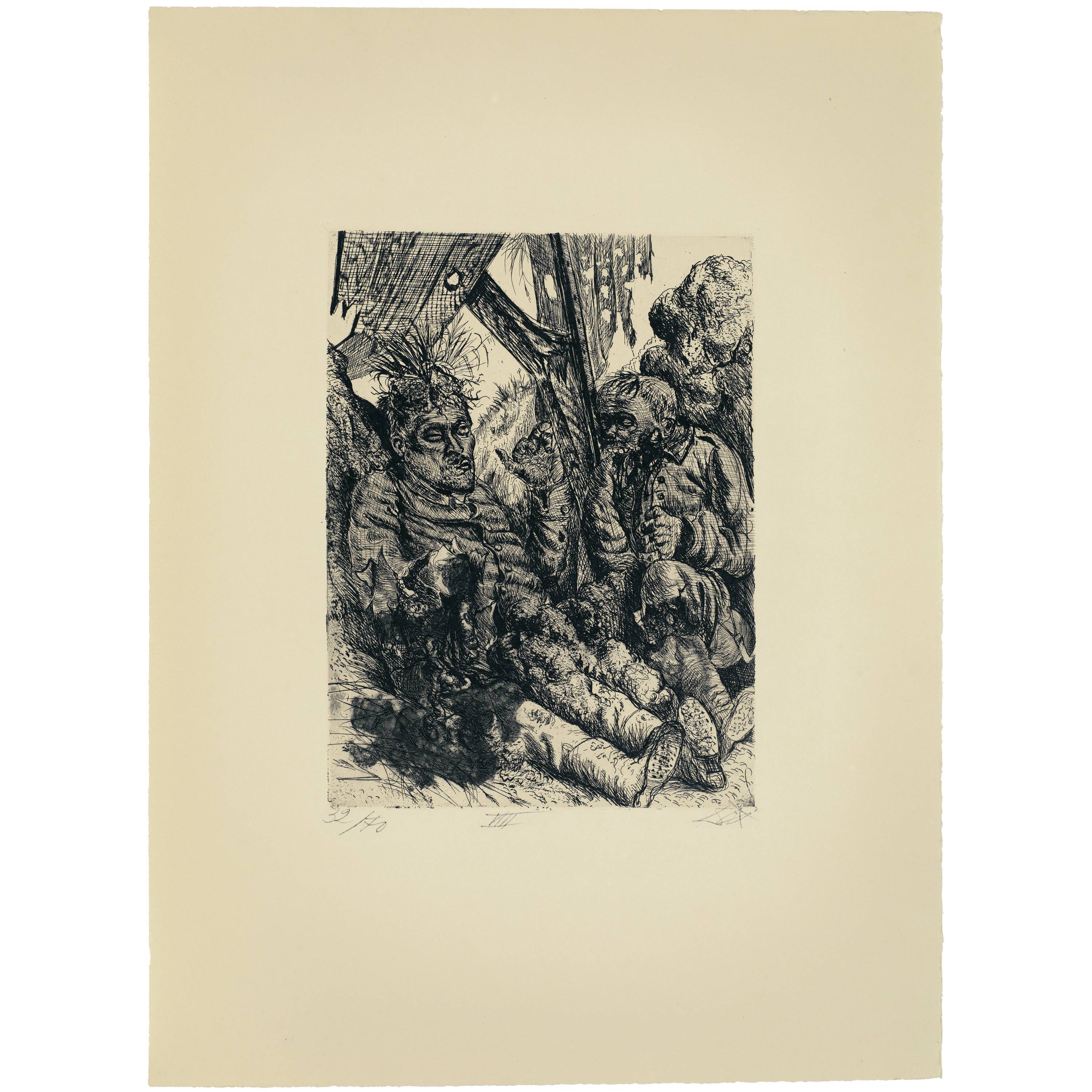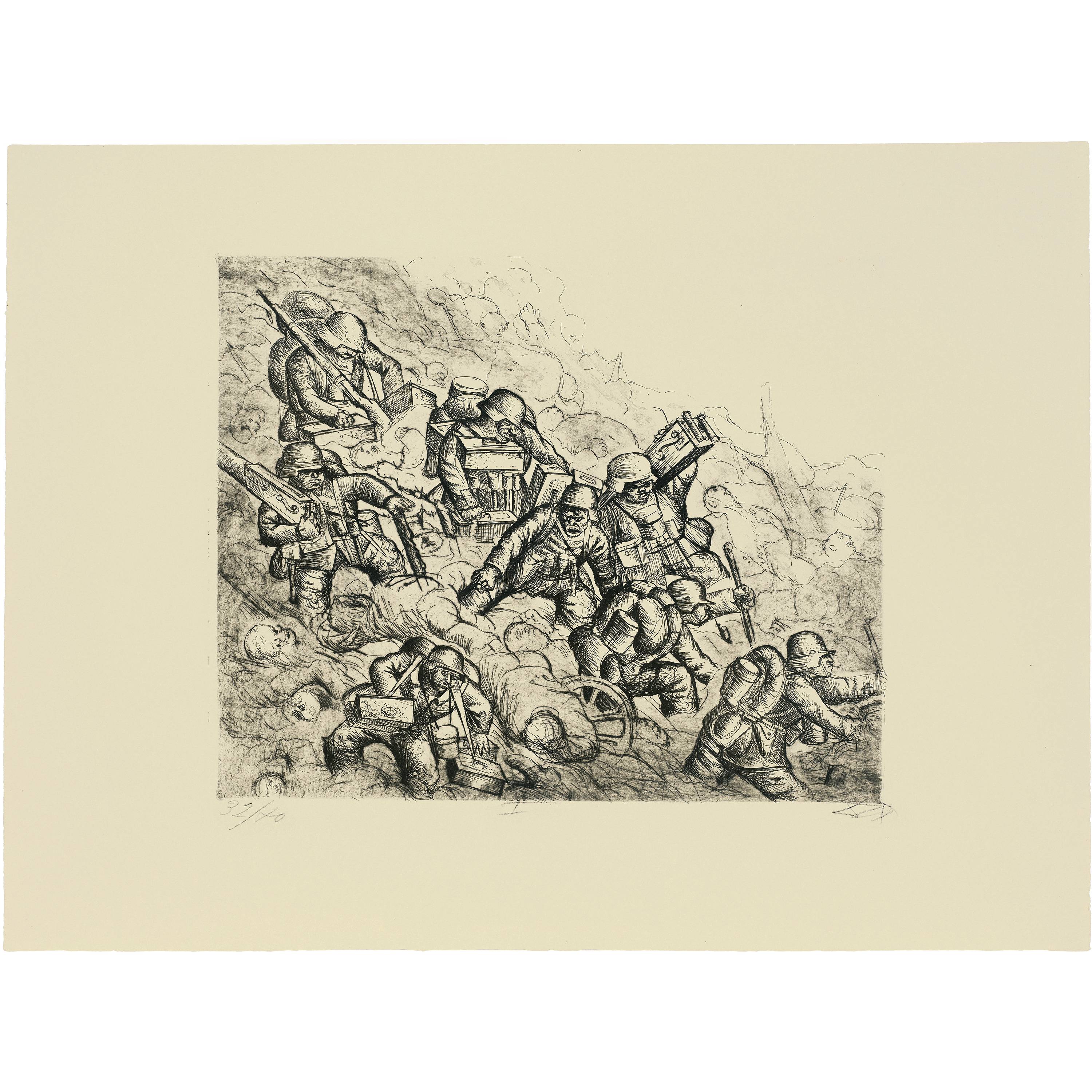 The result is the most important testimony from a German artist in connection with the First World War. With no false heroization, the atrocities and atrocities of the armed conflict from 1914 to 1918 are relentlessly recorded and recorded. Otto Dix created the series in 1924 on the basis of drawings that he experienced during his own deployments as a soldier from 1916 to 1918 in Champagne, the Somme and Flanders