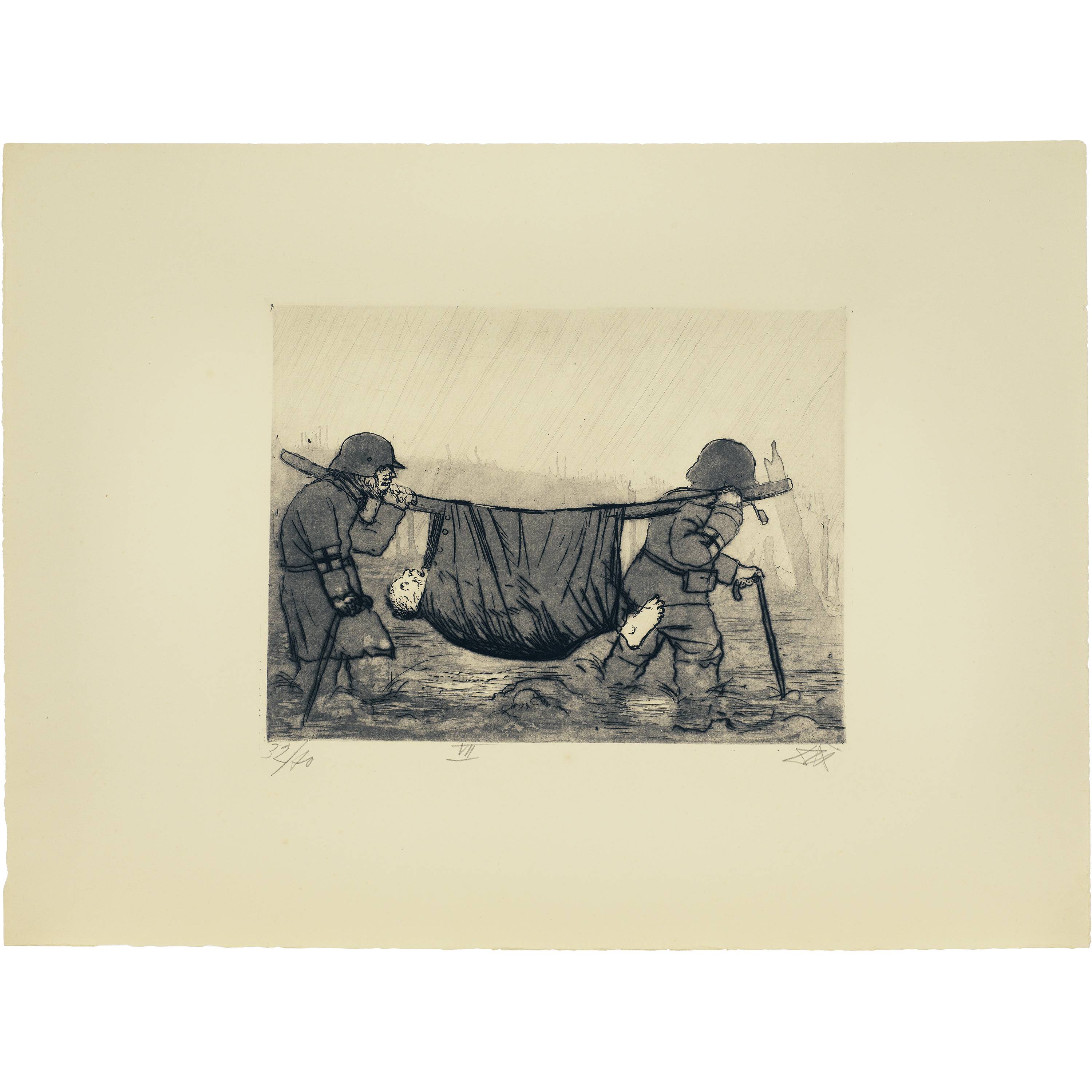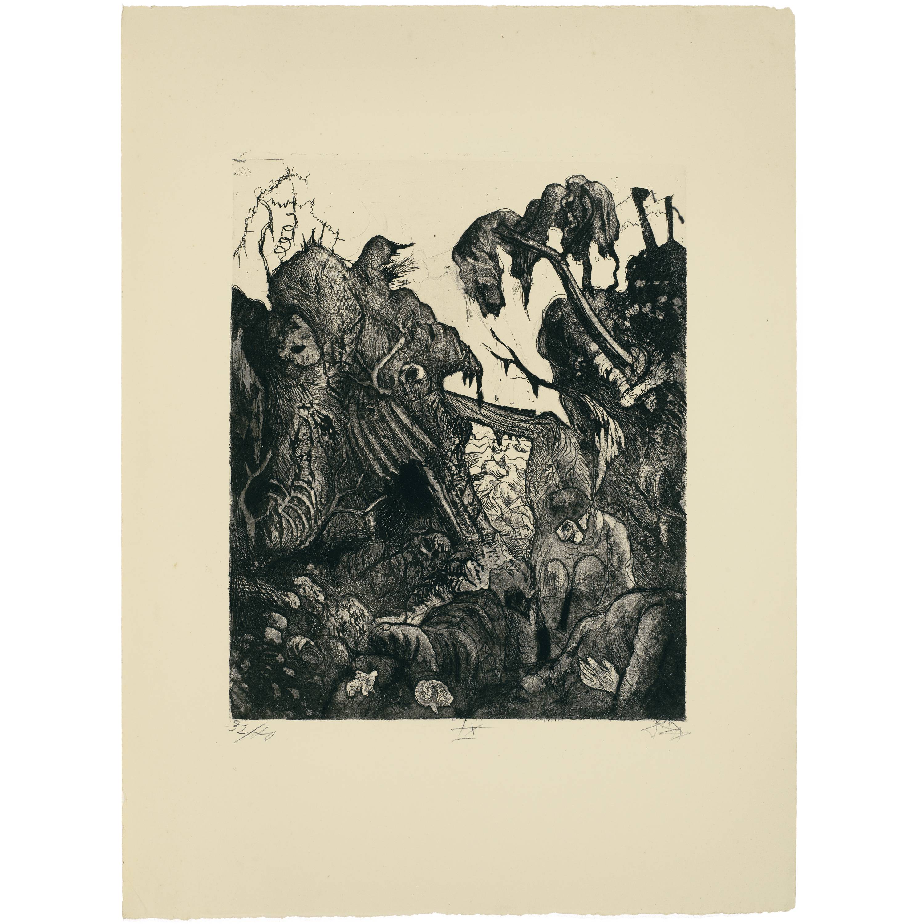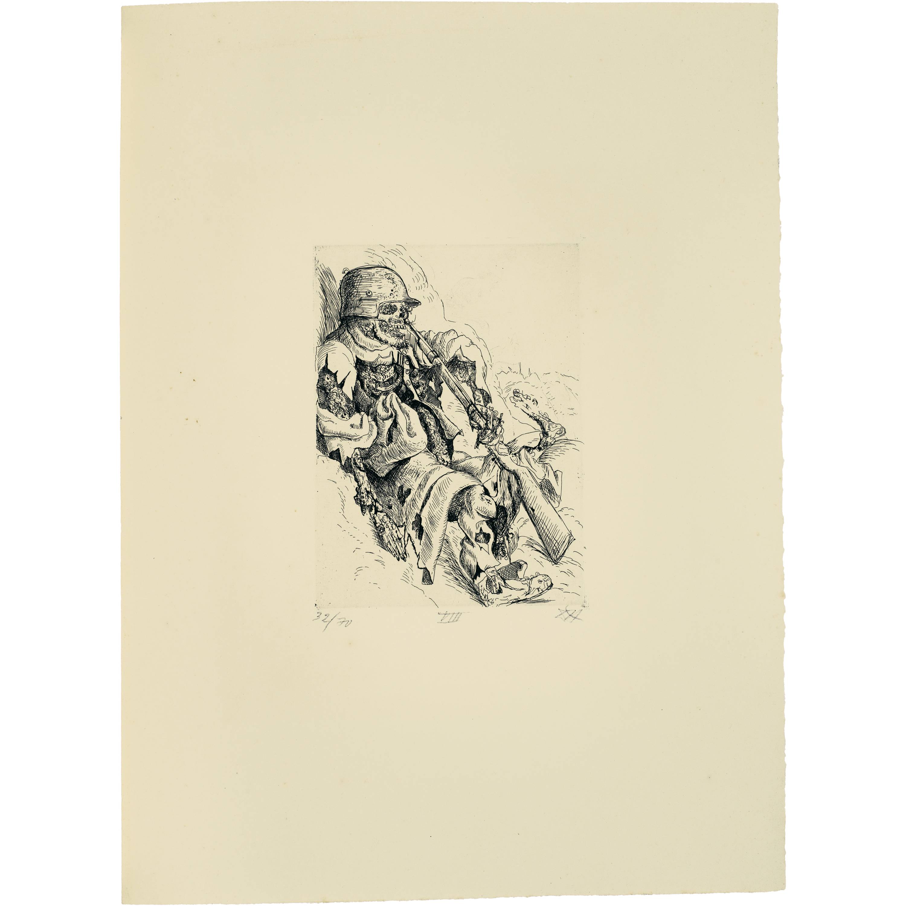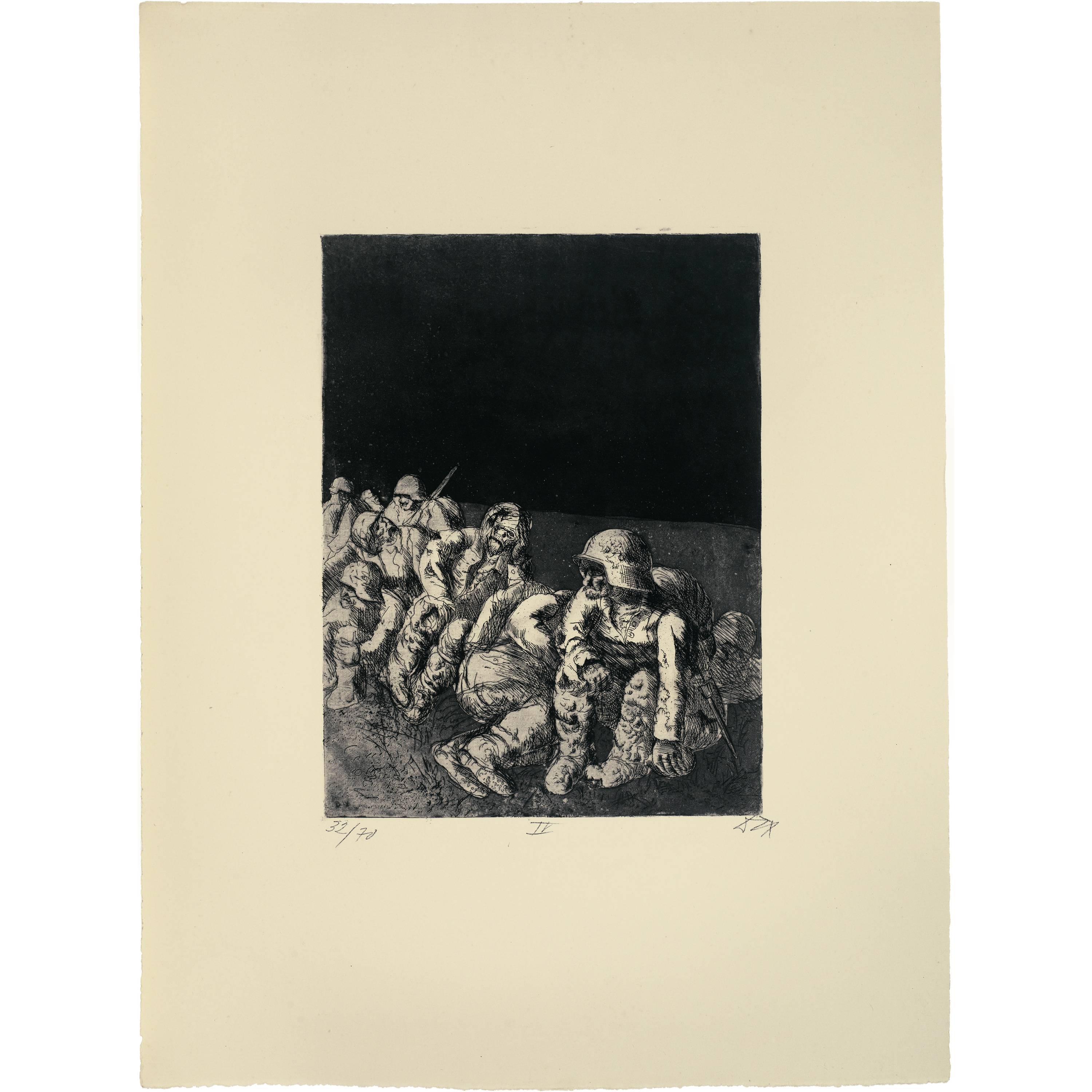 The result is the most important testimony from a German artist in connection with the First World War. With no false heroization, the atrocities and atrocities of the armed conflict from 1914 to 1918 are relentlessly recorded and recorded. Otto Dix created the series in 1924 on the basis of drawings that he experienced during his own deployments as a soldier from 1916 to 1918 in Champagne, the Somme and Flanders