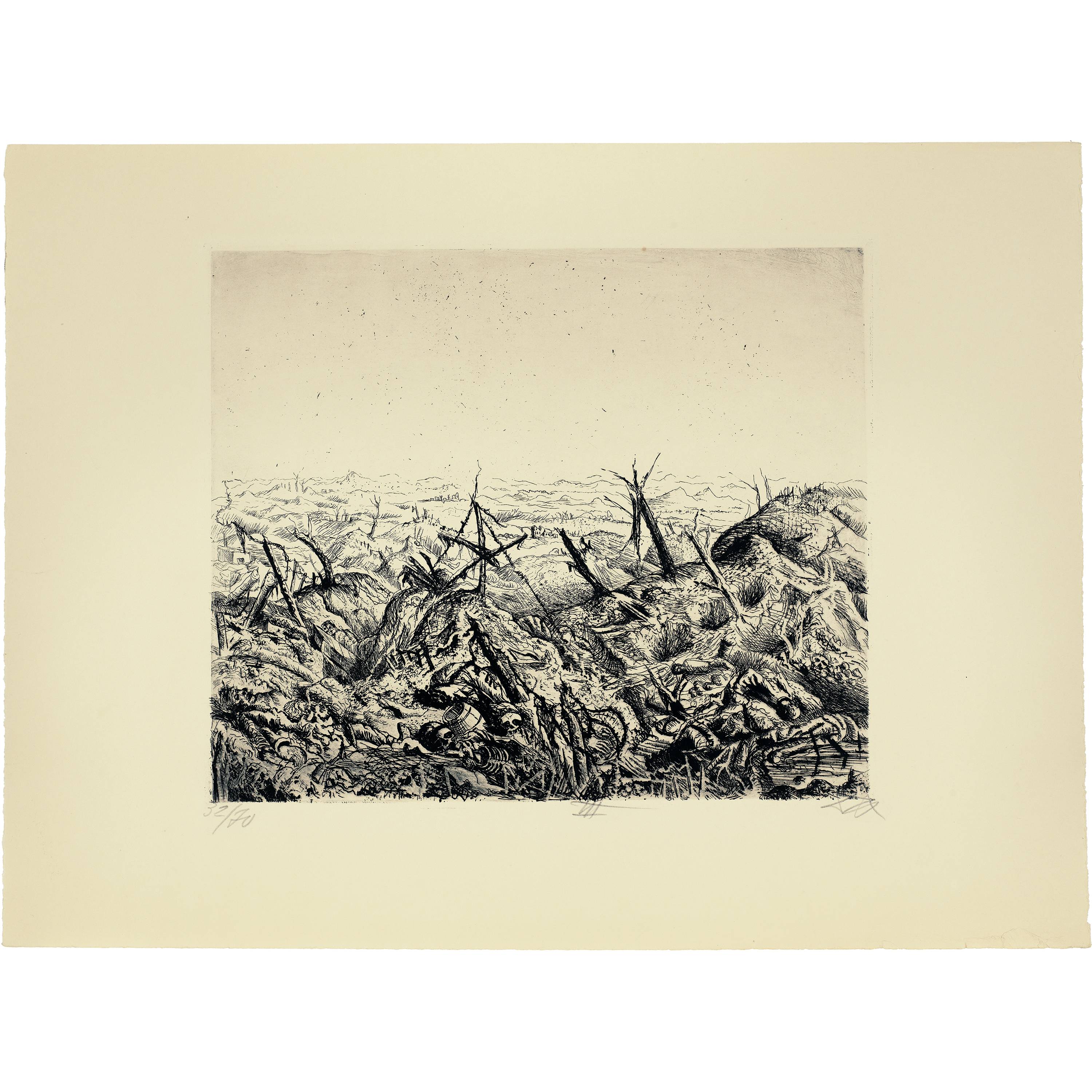 1924, geschaffen auf Grund von Zeichnungen, die während des Krieges von 1916 bis 1918 in der Champagne, an der Somme und in Flandern vor Ort entstanden sind