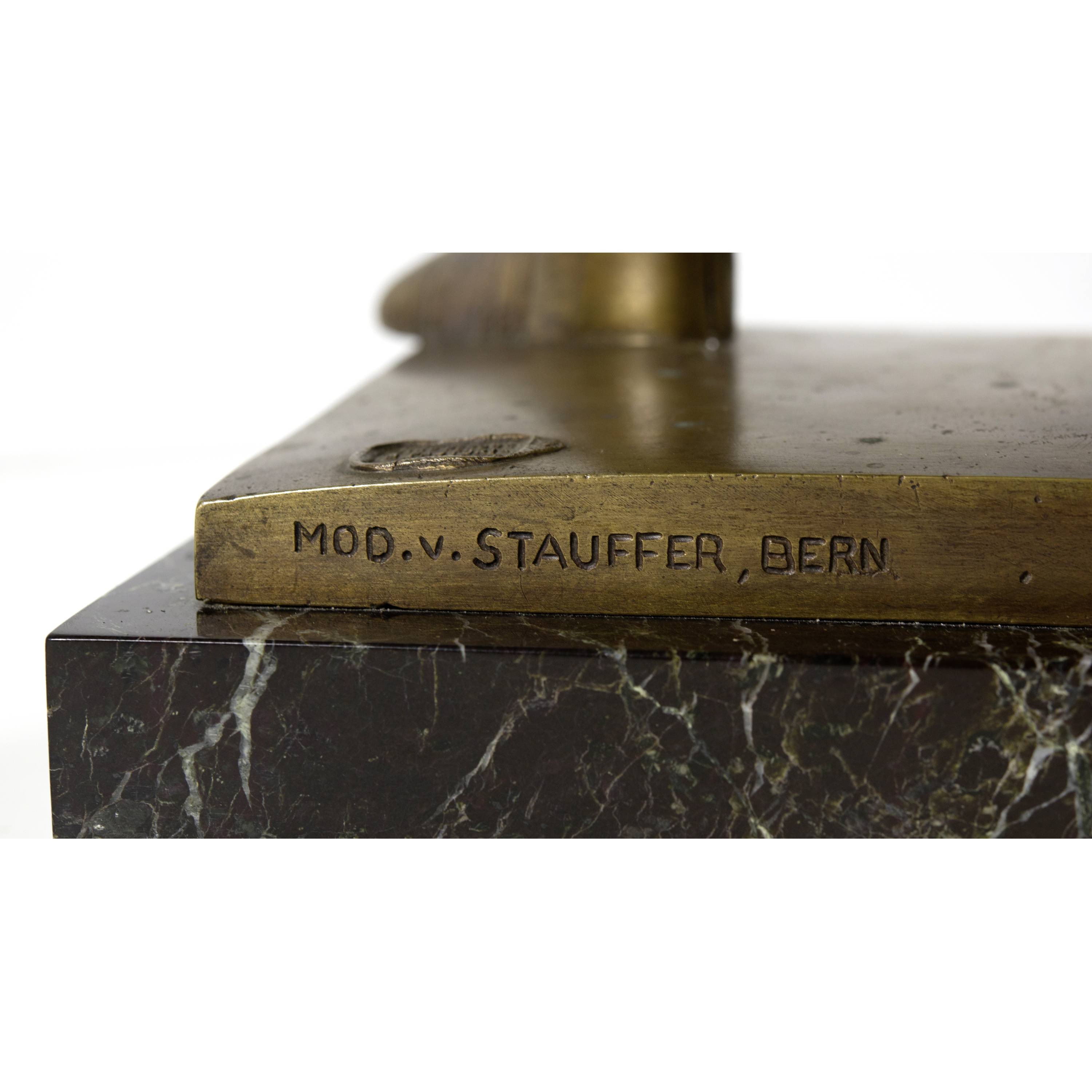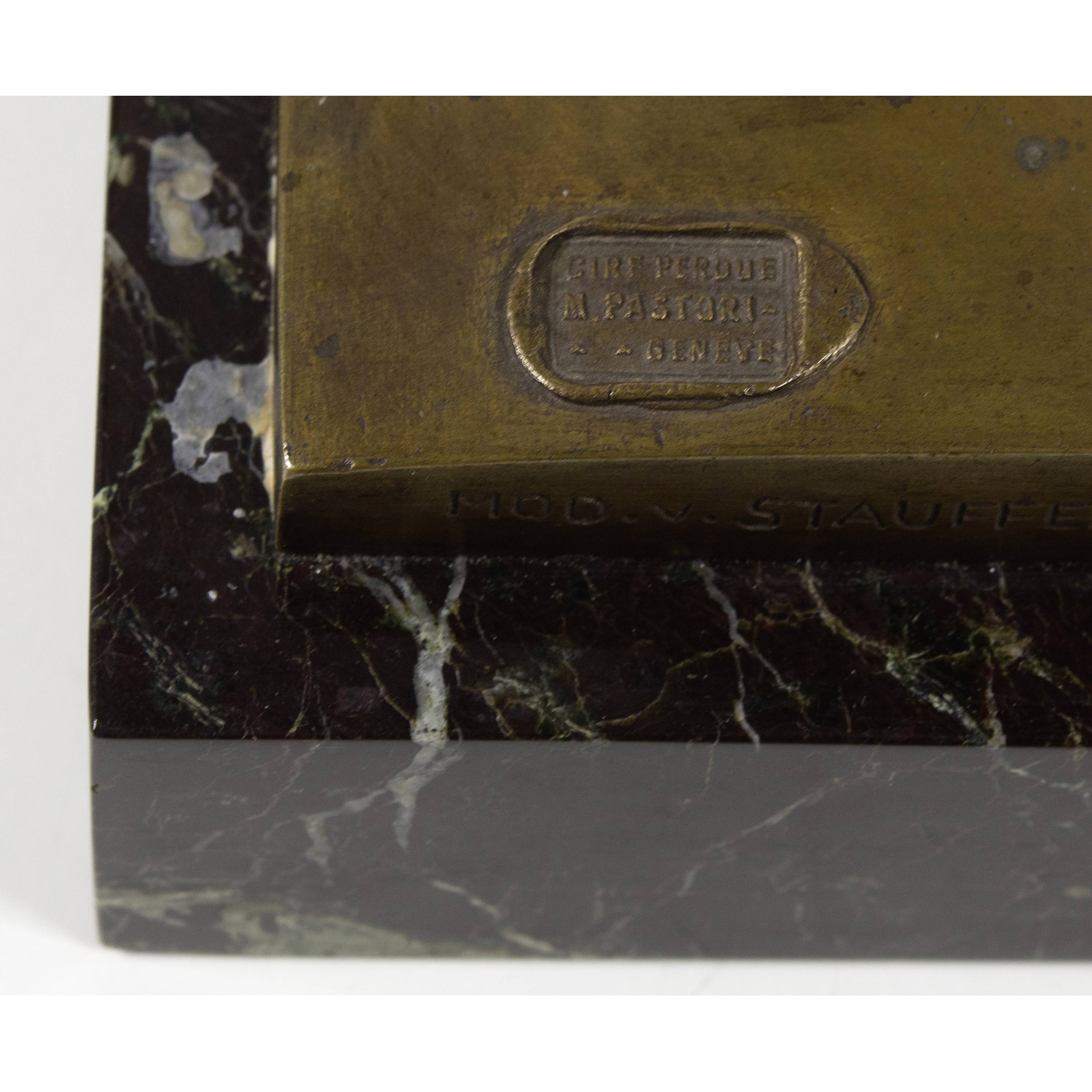 On the base with foundry stamp "Cire perdue / M Pastori / Genève", stamped on the reverse "MOD. v. STAUFFER-BERN".