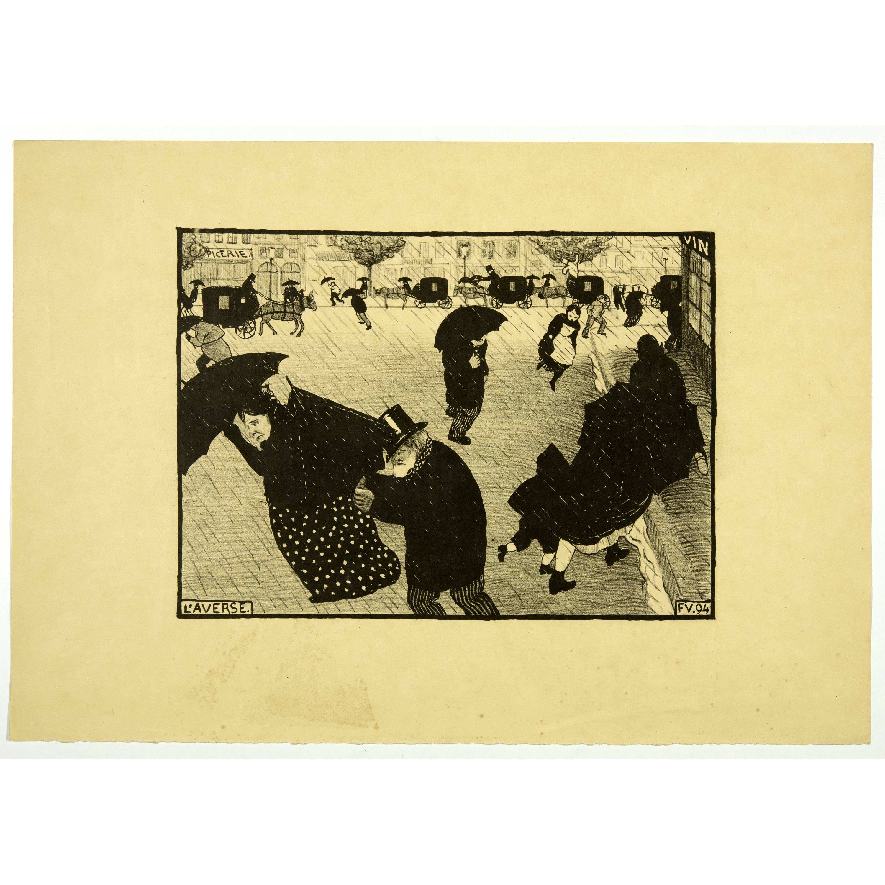 Vorhanden sind: Titelblatt. - Les chanteurs. - Au violon. - Deuxième bureau. - L'averse
