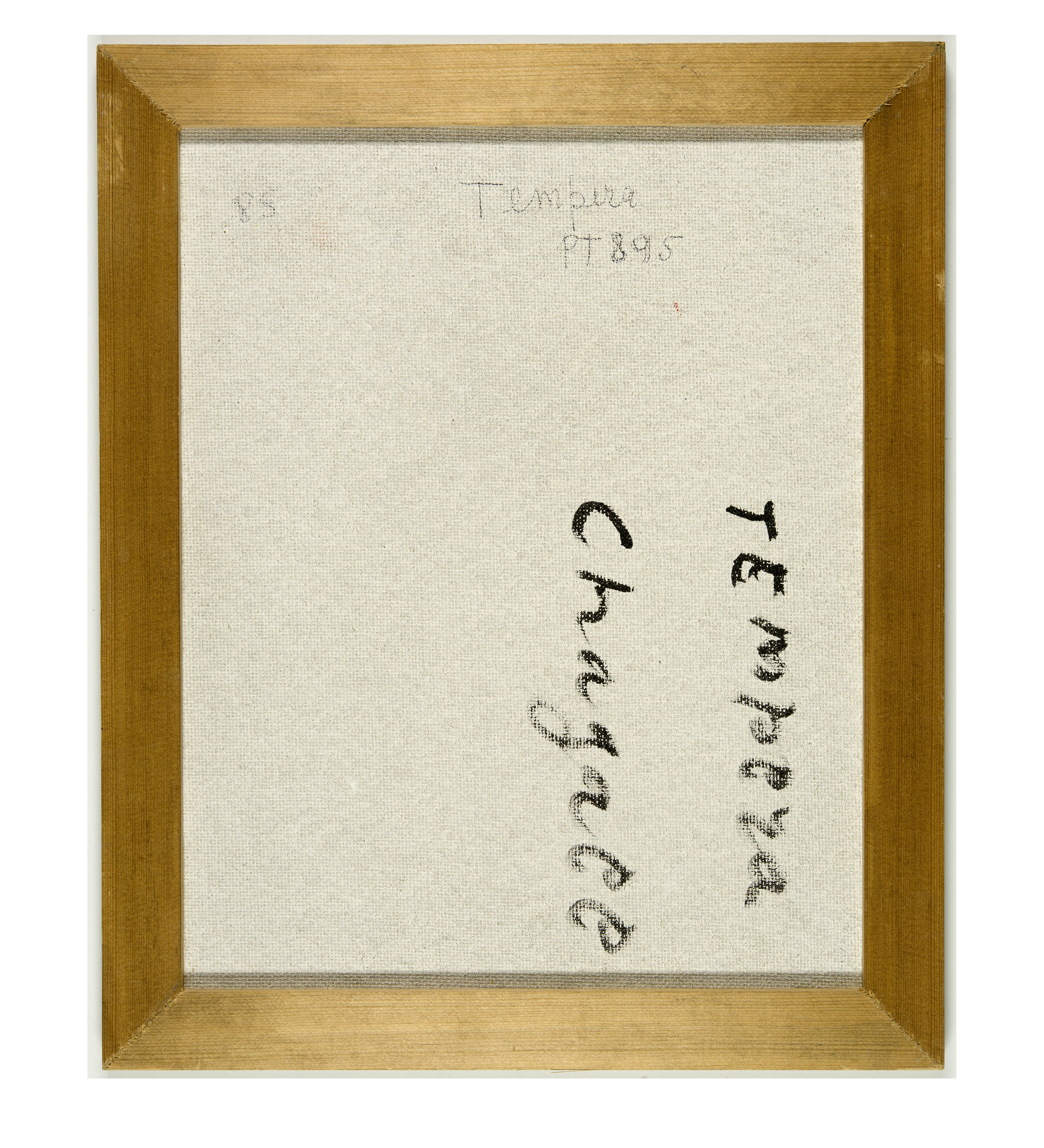 Unten rechts vom Künstler signiert "Marc / Chagall", rückseitig mit Bezeichnung und Signatur "Tempera / Chagall"
