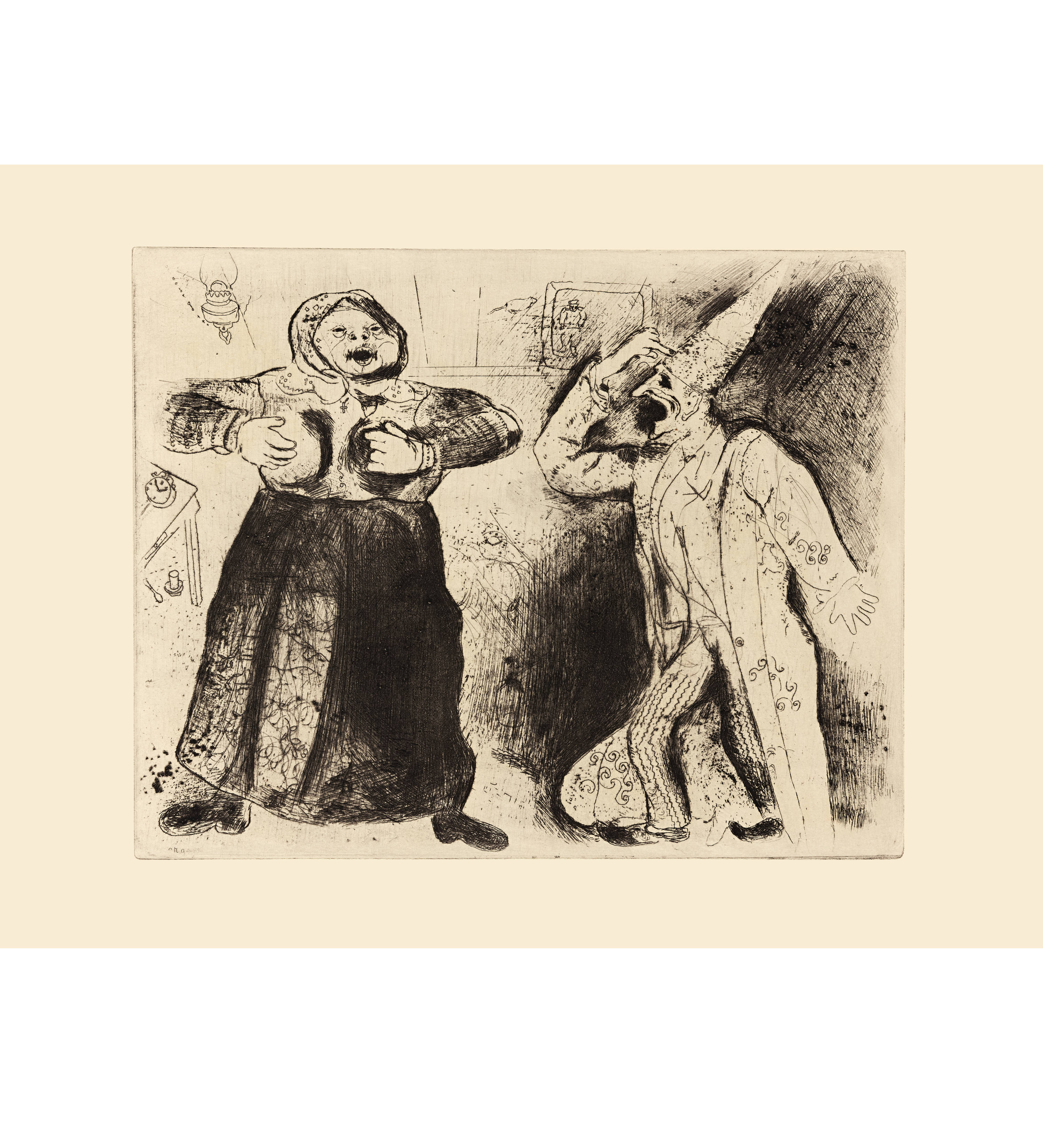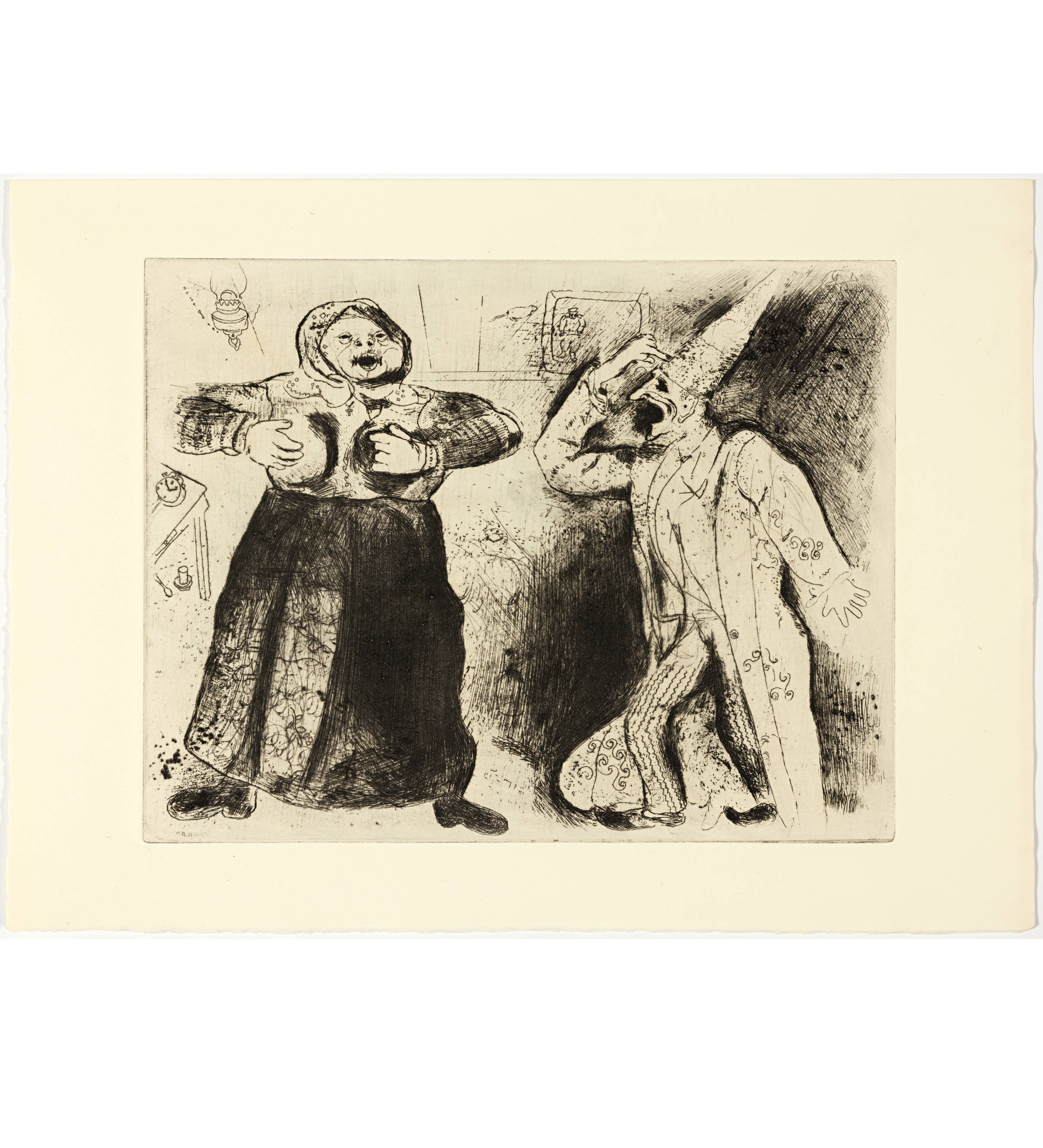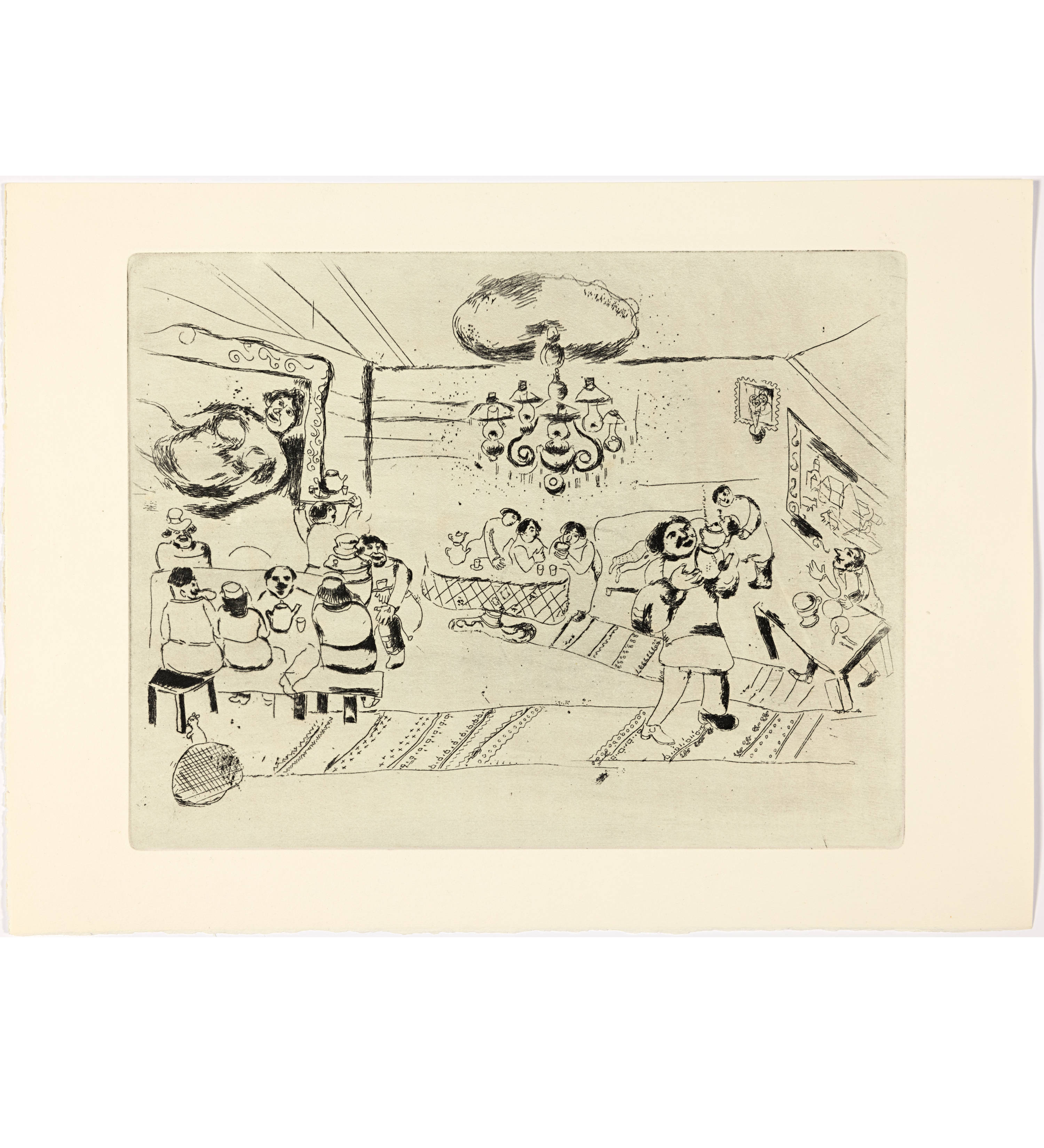 Im Impressum vom Künstler in Tusche signiert "Marc Chagall" und mit der Nummer "17" als eines der 50 Vorzugsexemplare (Gesamtauflage 368 Exemplare) ausgewiesen. Mit 96 Radierungen lose den zwei Textbänden beiliegend und mit 22 radierten Initialen und Vignetten. Zusätzlich mit der Suite der 96 Radierungen, auf "Japon nacré" gedruckt, in einem dritten Band lose beiliegend