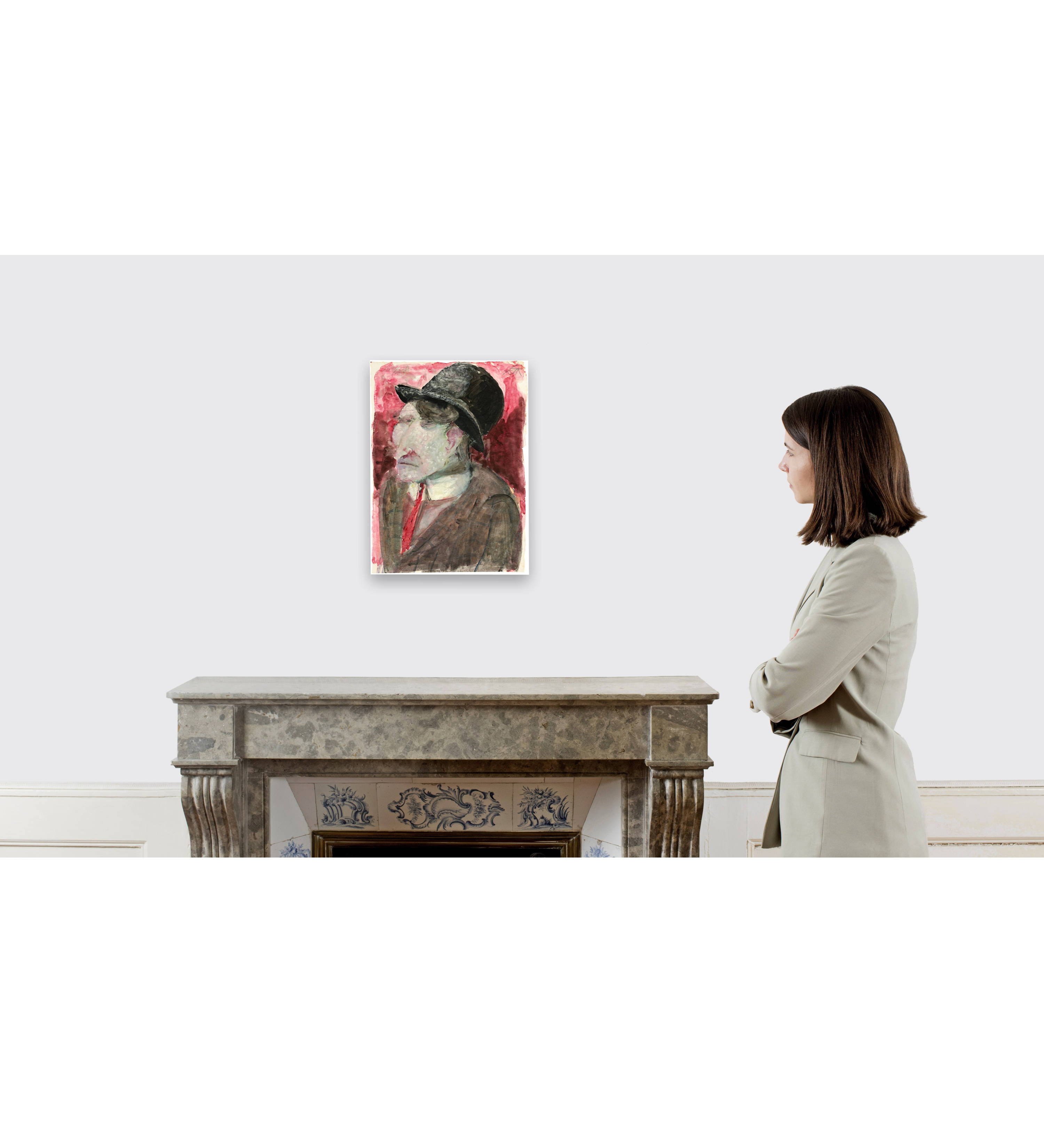 Depictions of pimps, prostitutes and all kinds of "nocturnal phenomena" were part of his repertoire and recurring subjects in his œuvre. One year after the watercolour offered here, he even painted a watercolour in which the pimp bears the facial features of Adolf Hitler (Pfäffle WVZ A-1923/66). Dix exposed the great contradictions in society and laid them bare with his merciless depictions. The "Pimp" offered here wears a bowler hat and looks like a caricature of himself in the surroundings bathed in red. An impressive example of Dix's unconcealed social criticism