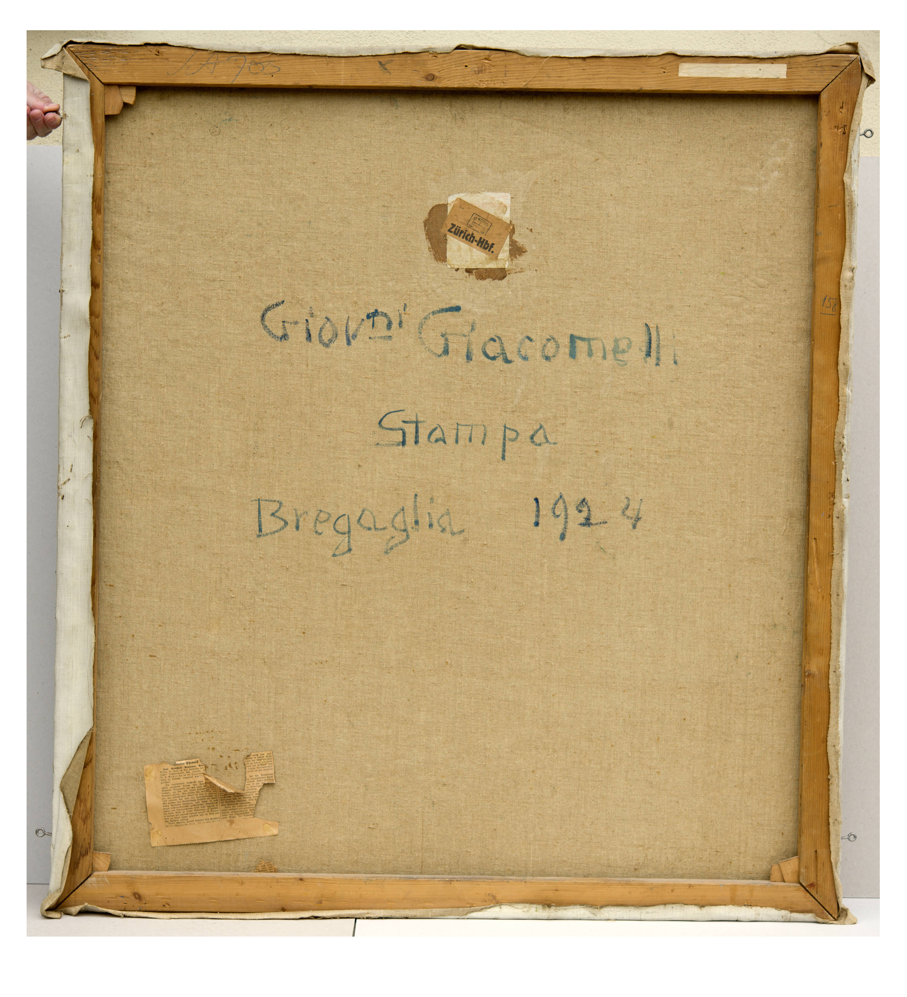 Karl and Anna Balsiger from Solothurn were collectors of Giovanni Giacometti's works with a holiday home in Silvaplana. During their holidays they visited the artist in Maloja. In 1922 he painted the double portrait "The Sisters" of their two daughters Anny and Dora (Müller/Radlach 1922.07). In a letter from Giacometti to Karl Balsiger of 30 October 1924, he probably mentions the present work: "[...] But Bergell has nevertheless lost nothing of its charm. Especially now it has very peculiar light effects here and the landscape is very picturesque. I am completing my large Stampa painting. The weather is favourable [...]" (in: Giovanni Giacometti, Briefwechsel mit seinen Eltern, Freunden und Sammlern, ed. Viola Radlach, Zurich 2003, no. 643)
