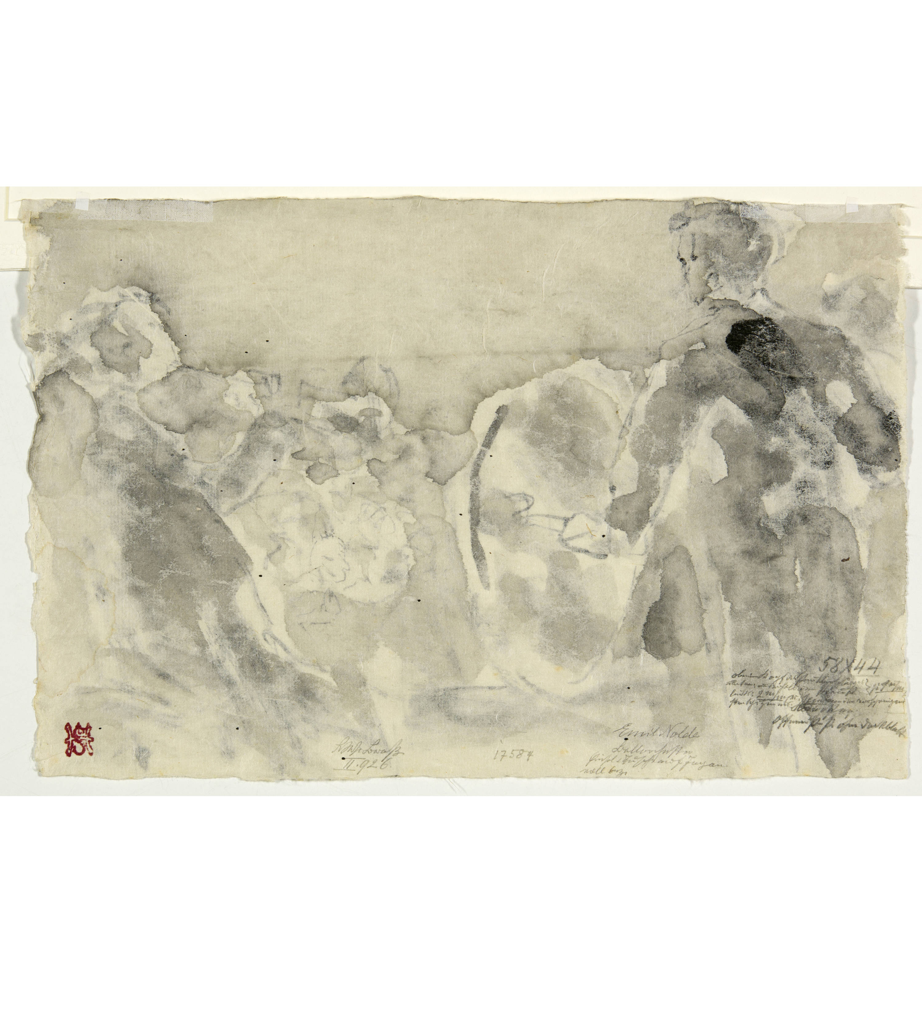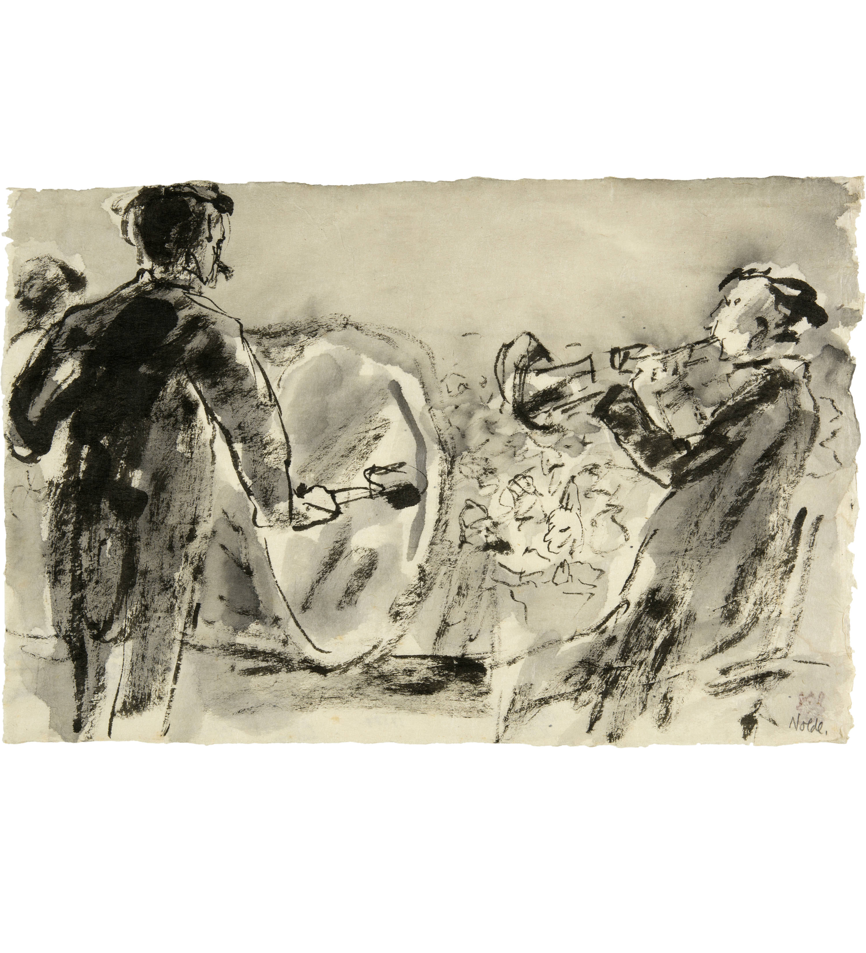 In the 1910s, Nolde spent the winter months in Berlin with his wife Ada. In addition to the well-known landscapes, he painted religious subjects as well as pictures of Berlin nightlife. The latter is probably the case with the present sheet