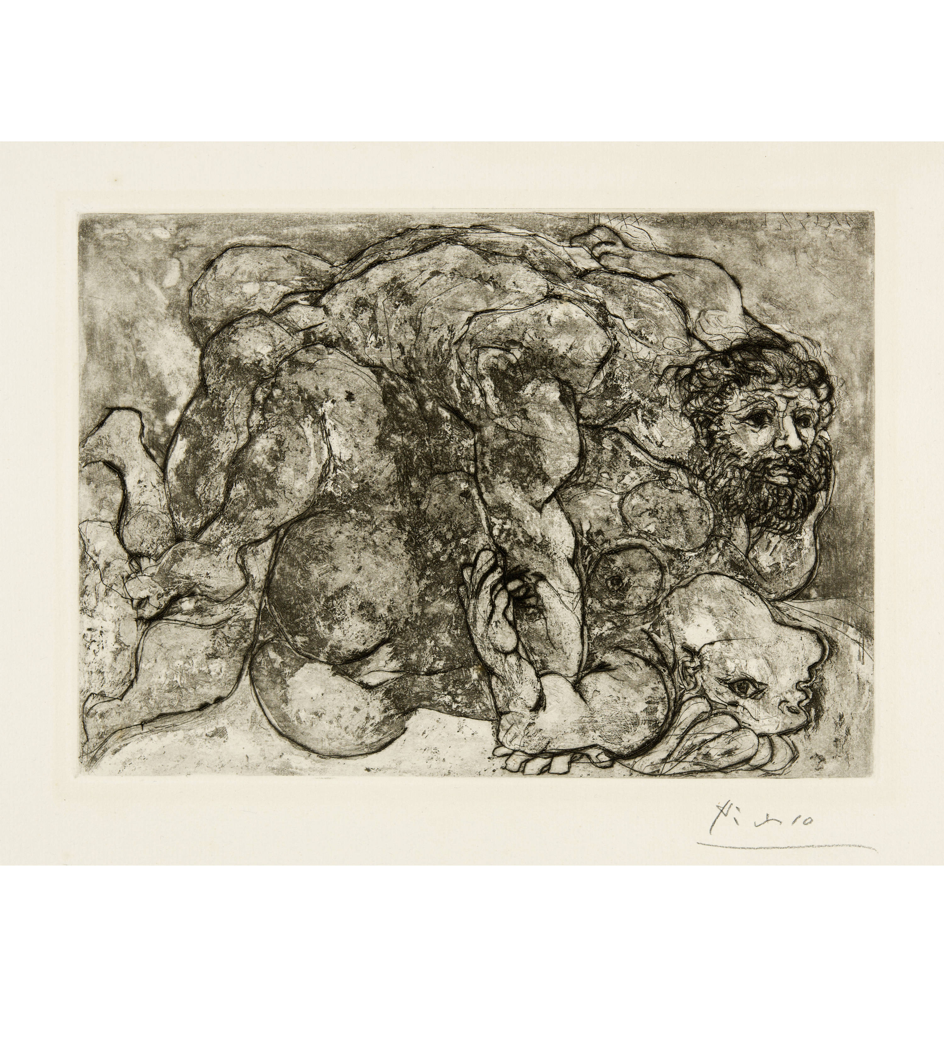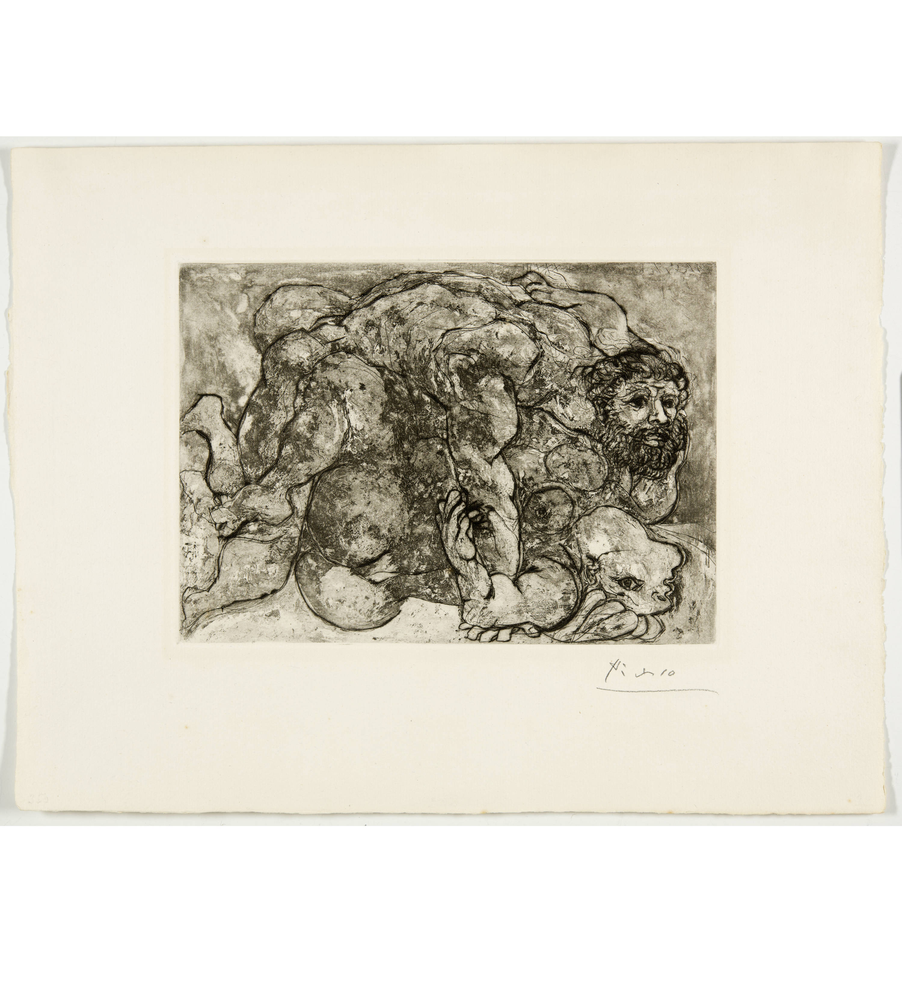 On laid paper, with watermark "Picasso". Minimal lightstruck around the platemark, with a few foxing spots, the reverse slightly discoloured. The print in fine condition