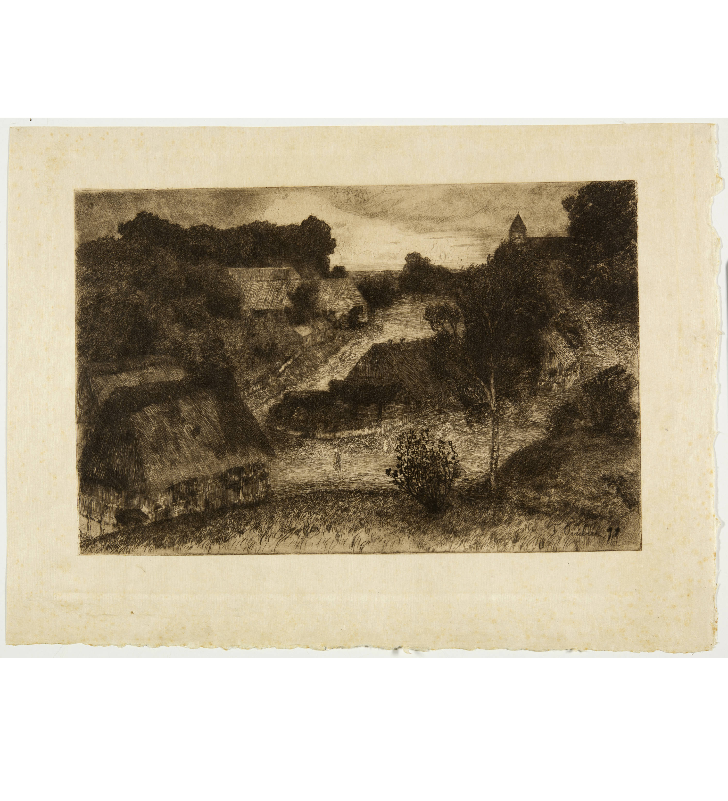 On grey, thin wove paper (papier vélin). At the back side with another sketch of the farmer. With lightstrucks, paper strongly browned and four small holes. Traces of an old mounting at the margins and a small backed loss at the upper right corner.