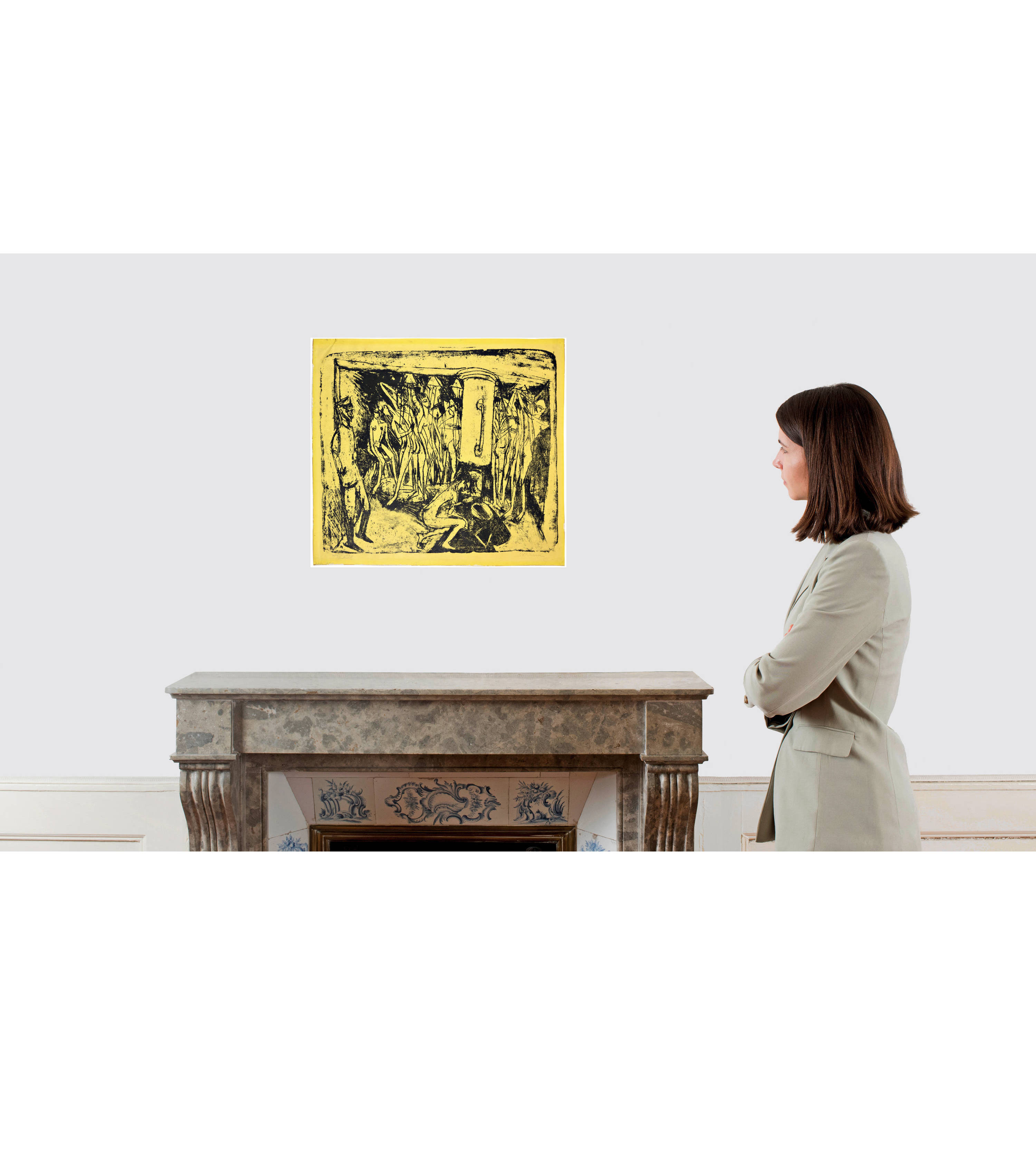 The lithograph was created in connection with the painting "Das Soldatenbad" from 1915 (Gordon 434). There is also a pen and ink drawing of the same subject called "Soldatenbad", which is now in the Moritzburg Art Museum in Halle (Saale), as well as a small sketch in a letter to Karl Ernst Osthaus (1874-1921), the collector and founder of the Folkwang Museum in Hagen. Kirchner wrote this letter on 10 January 1916 from the Kohnstamm Sanatorium in Königstein to suggest works to Osthaus for the travelling exhibition "Kunst im Kriege" (Delfs 265). The subject of "Artilleristenbad"", which Kirchner worked on shortly after his discharge from military service, is one of the most important artistic depictions of the psychological reality of war.