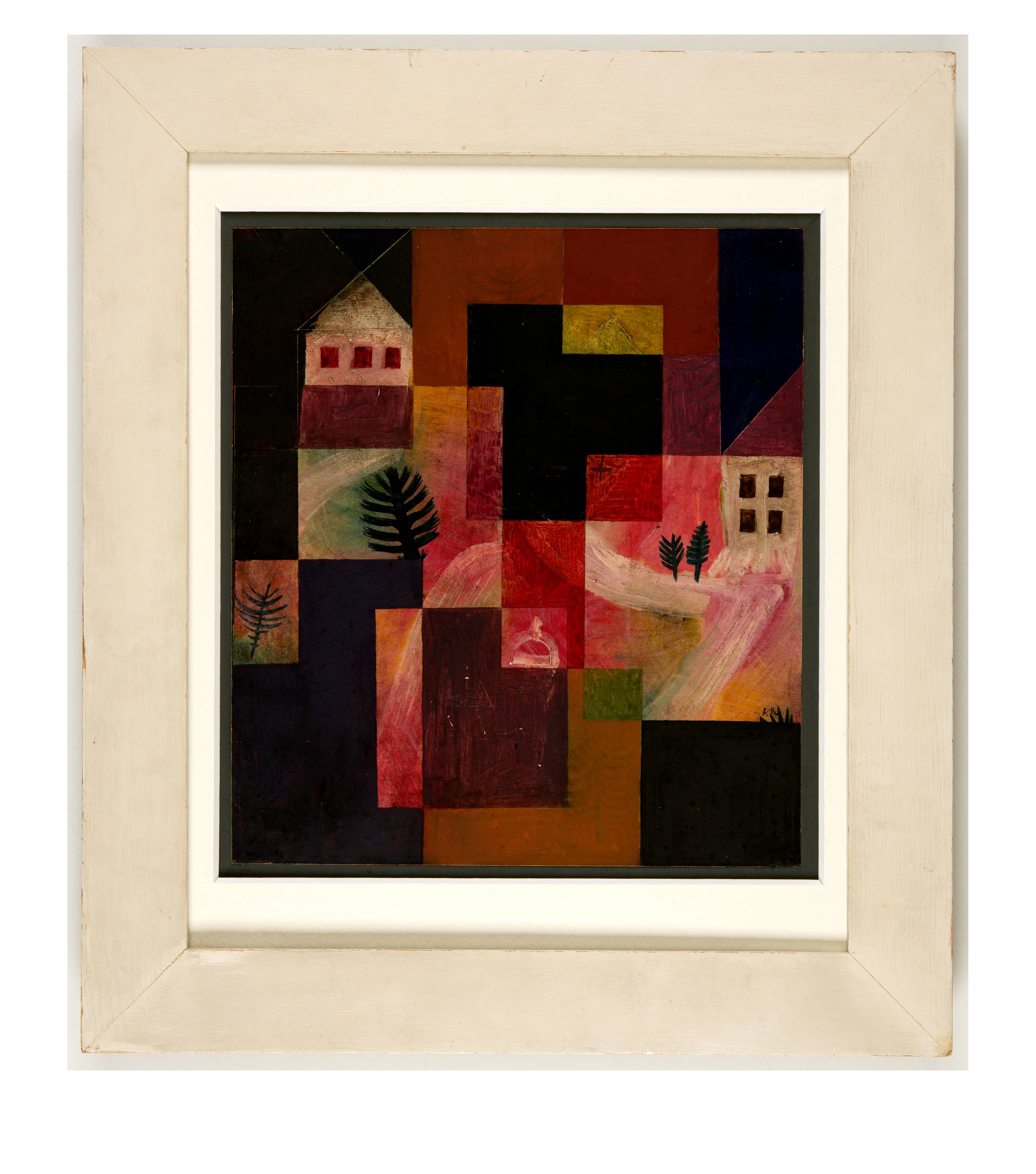 It was a very fruitful time; the present work was created in the first Bauhaus year of 1921, strongly influenced by the teachings of architecture. Klee initially worked mainly in watercolour. In a card to his son Felix dated 23 June 1921, he wrote: "Ich habe die Ölmalerei wieder aufgenommen. […] Ausserdem verschiedenes Neue angefangen. Es bleibt aber hier, nasse Ölmalerei muss ruhig stehen." The present small oil painting must have been created as part of these "new" works. Formally, it follows on from the already familiar cubic "Städtebilder", but now dissolves the rectangular forms much more strongly. For Osamu Okuda, the painting is one of Klee's key works, as it represents the transition from the expressionist to his constructivist conception of art in the 1920s. It is an astonishing construction in which the artist creates an incredible depth through the glazed application of colour. He skilfully allows the viewer to discover images in the picture by emphasising elements in different rectangles. Will Grohmann wrote about the painting in 1954: "[...] he pushes translucent larger squares on top of each other and forms buildings and spaces from the translucencies, into which he inscribes trees and paths, but the whole remains of hieratic rigour." The son of a musician and a gifted violinist, Klee probably also understood the composition in a music-theoretical way as a "chorale", i.e. as a diatonic and rhythmically simple superimposition of sounds in their simultaneity.