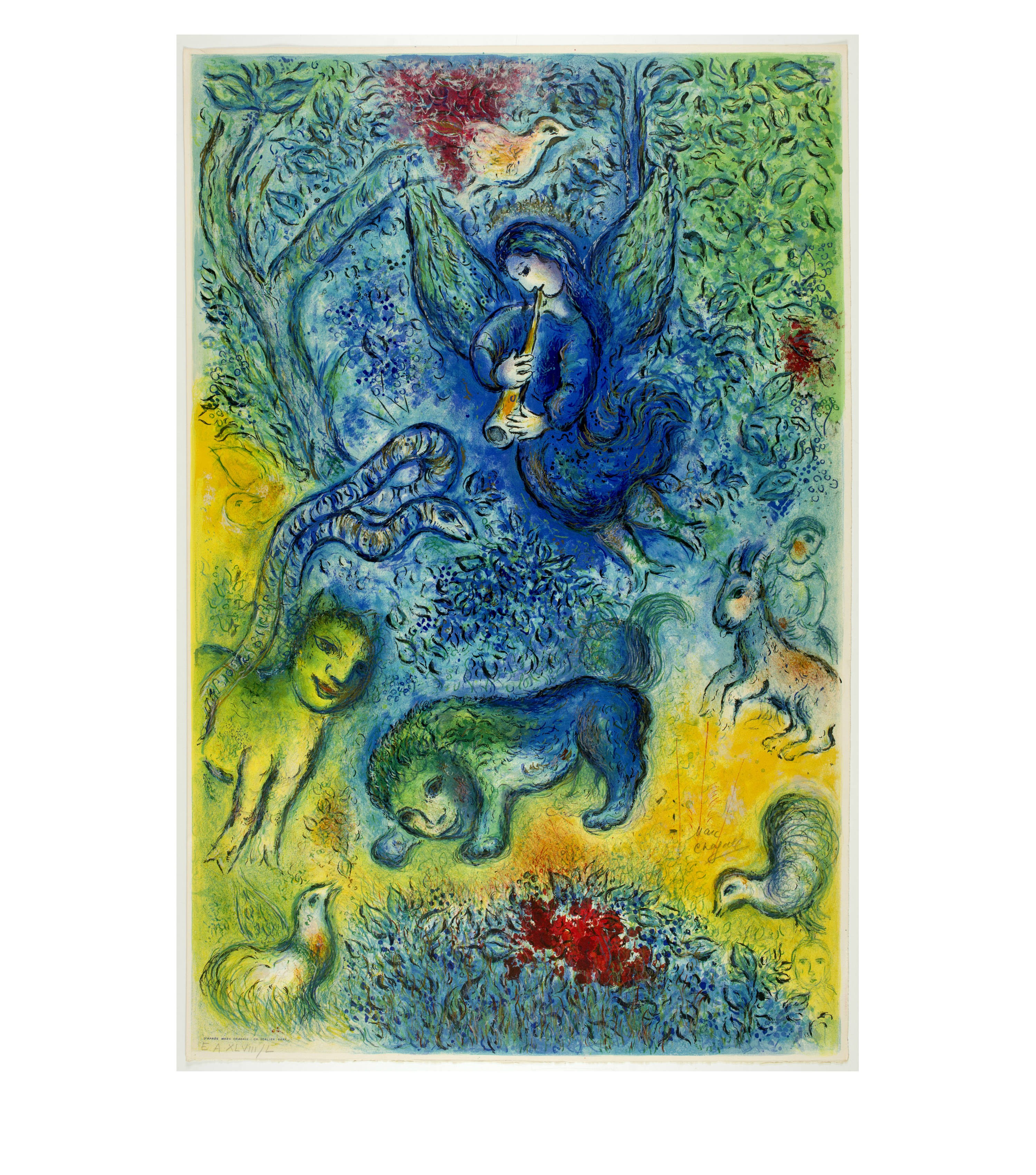 Unten rechts in der Darstellung vom Künstler in Bleistift signiert "Marc Chagall", links bezeichnet und nummeriert "E.A XLVIII/L". Mit der gedruckten Angabe "D'APRÈS MARC CHAGALL - CH. SORLIER GRAV."