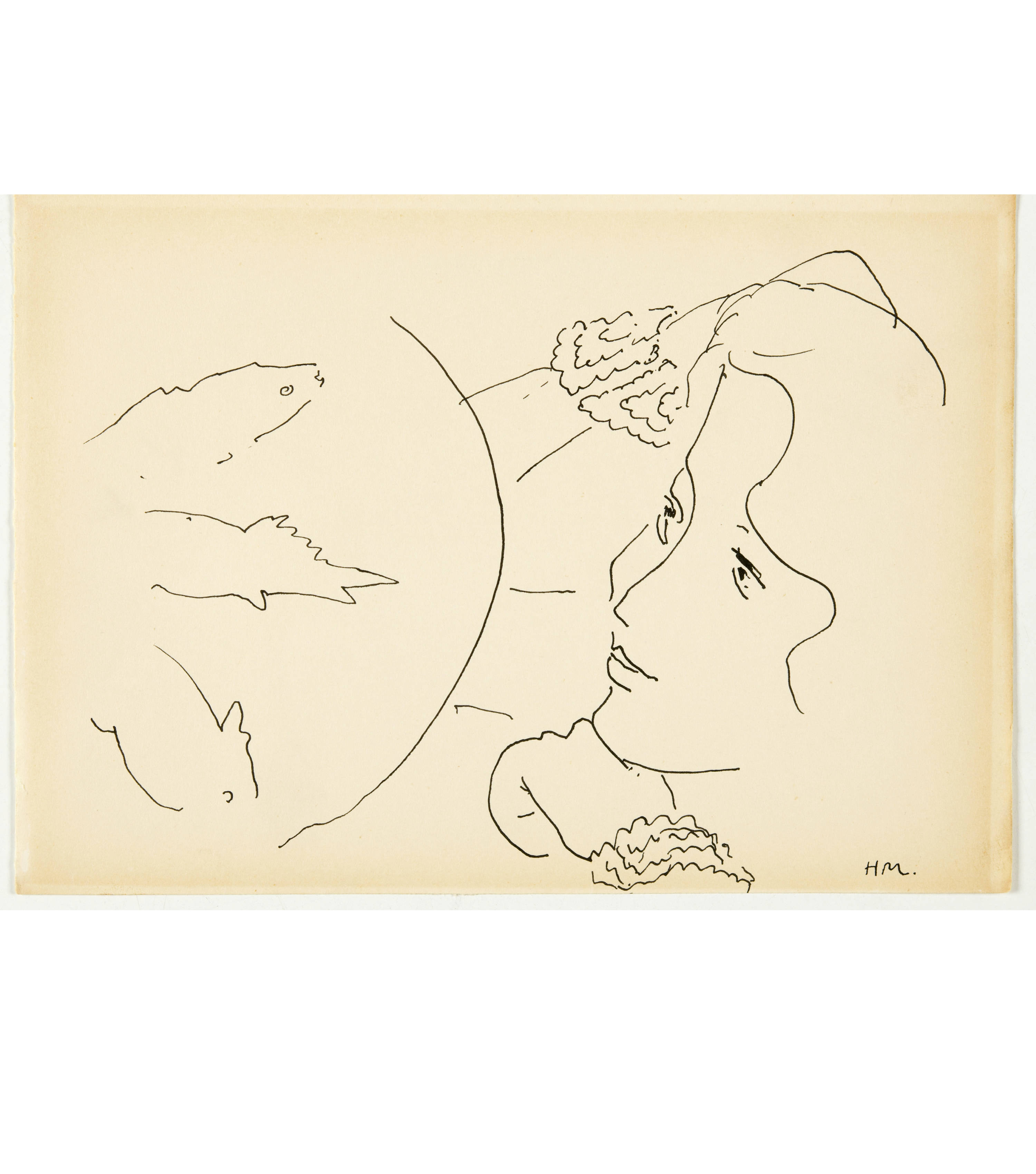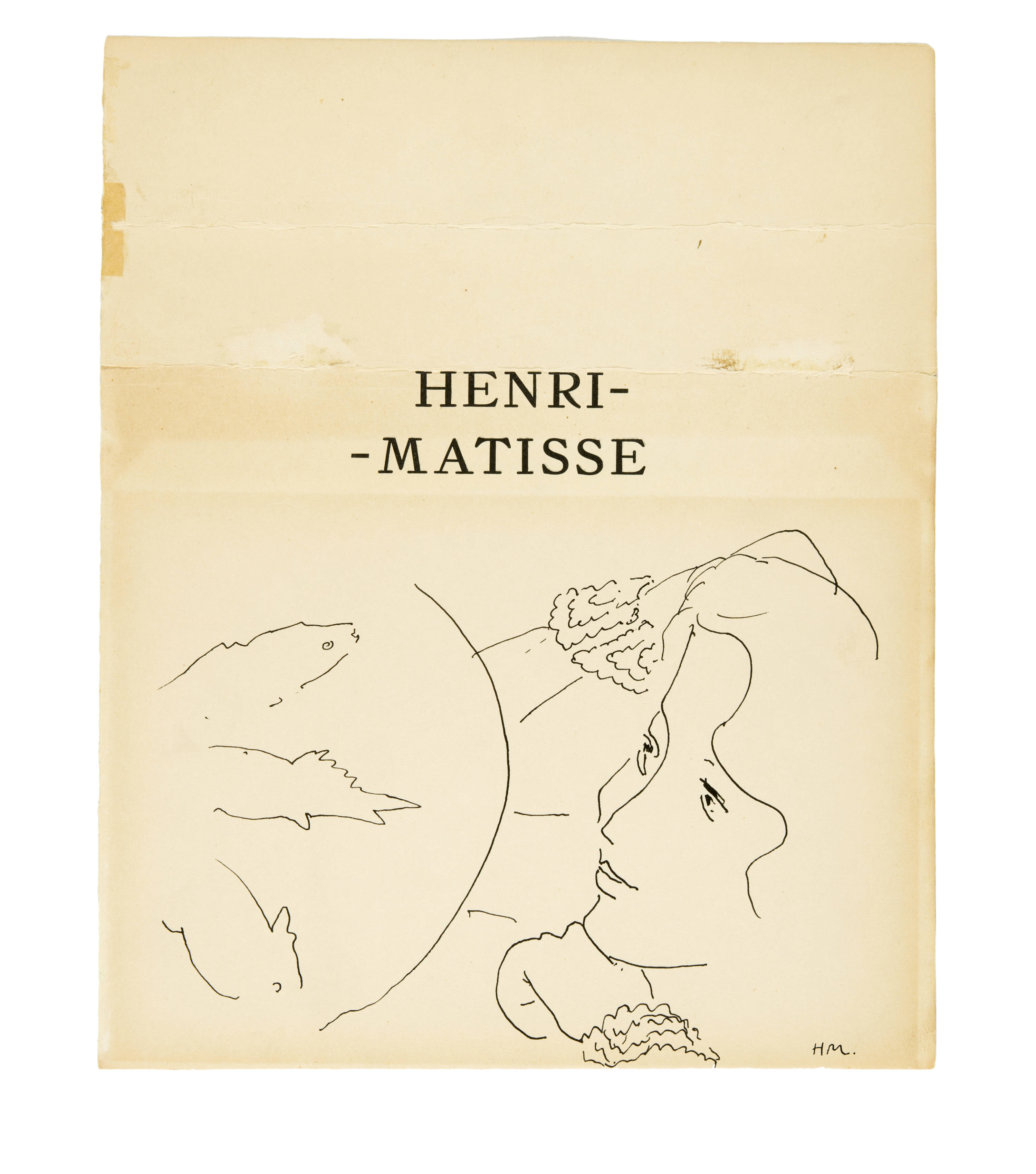 Pen and ink drawing on a title page of "Henri Matisse, Éditions des Chroniques du Jour"