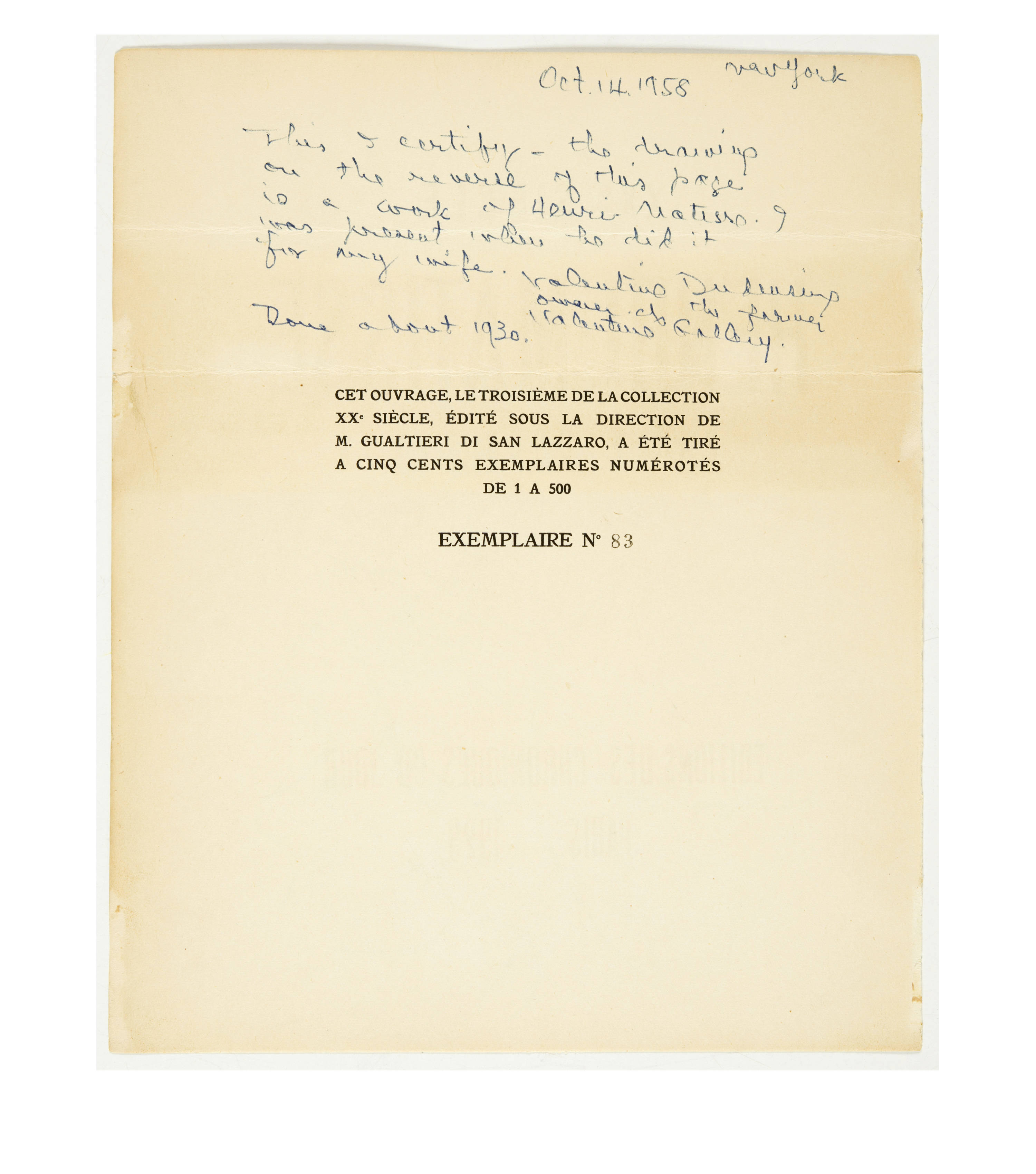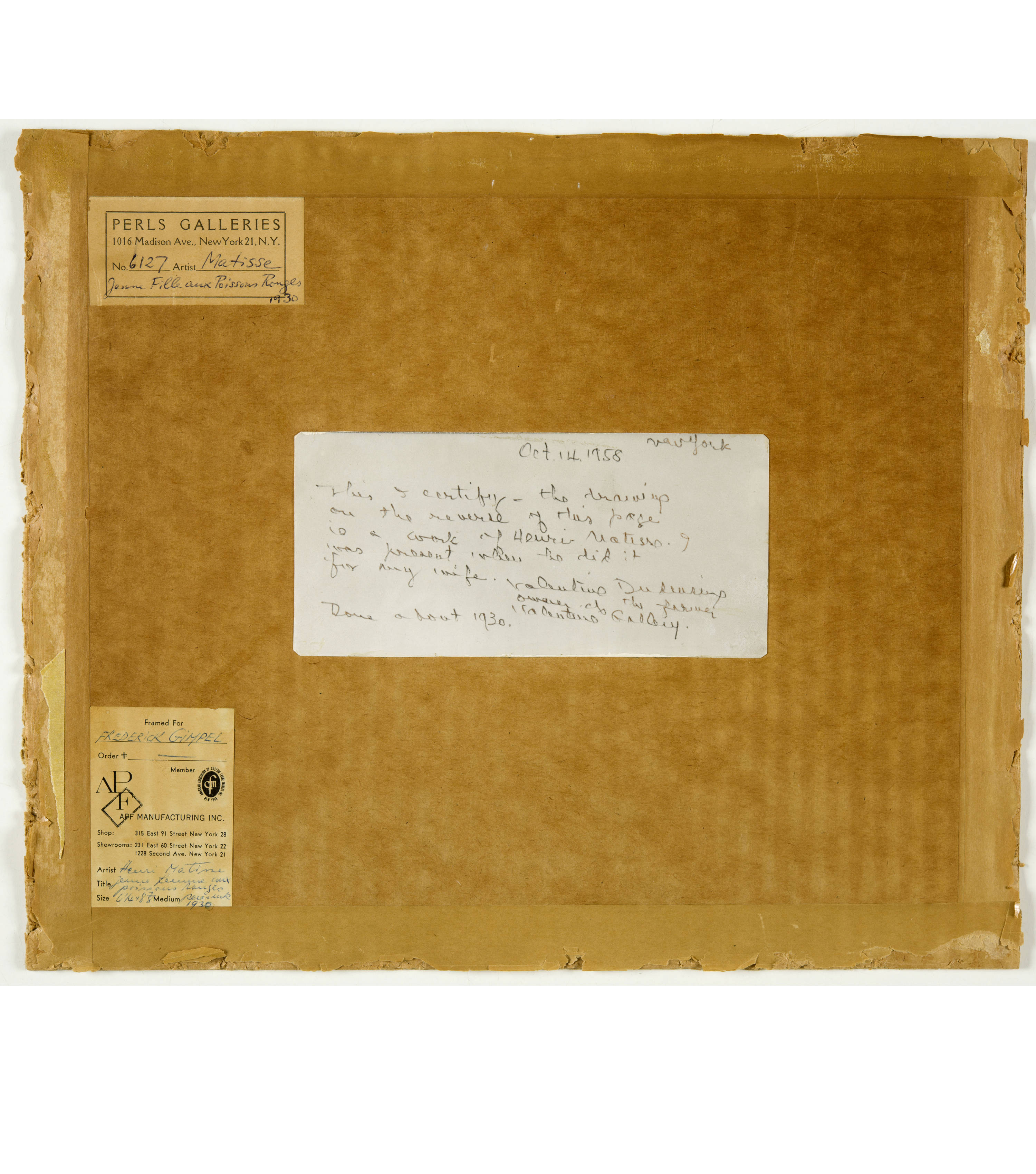 Die vorliegende Zeichnung ist den Archiven Henri Matisse, Issy-les-Moulineaux, bekannt. Der Käufer kann auf Anfrage eine Bestätigung beantragen
