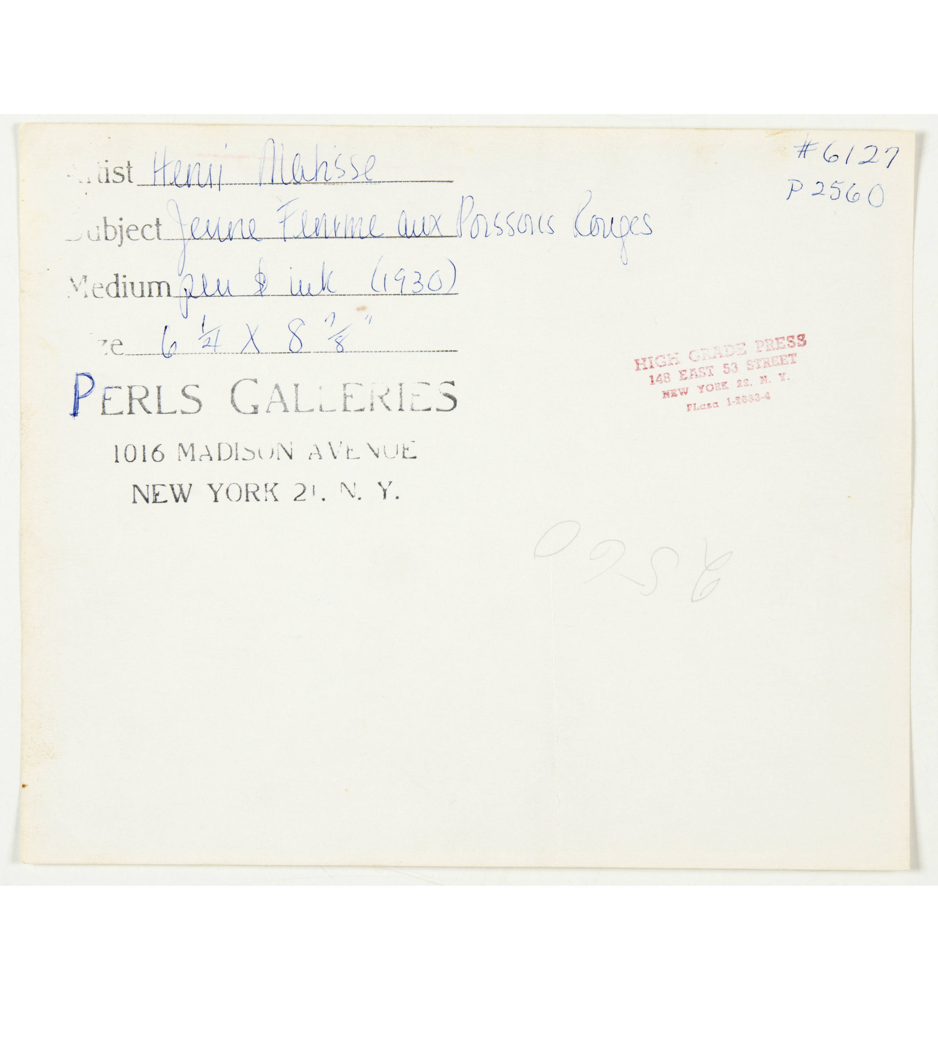Perls Galleries, New York, mit einem Fotoauszug und einem Etikett auf dem Rückenkarton, mit den Inventarnummern "6127" und "P2560"