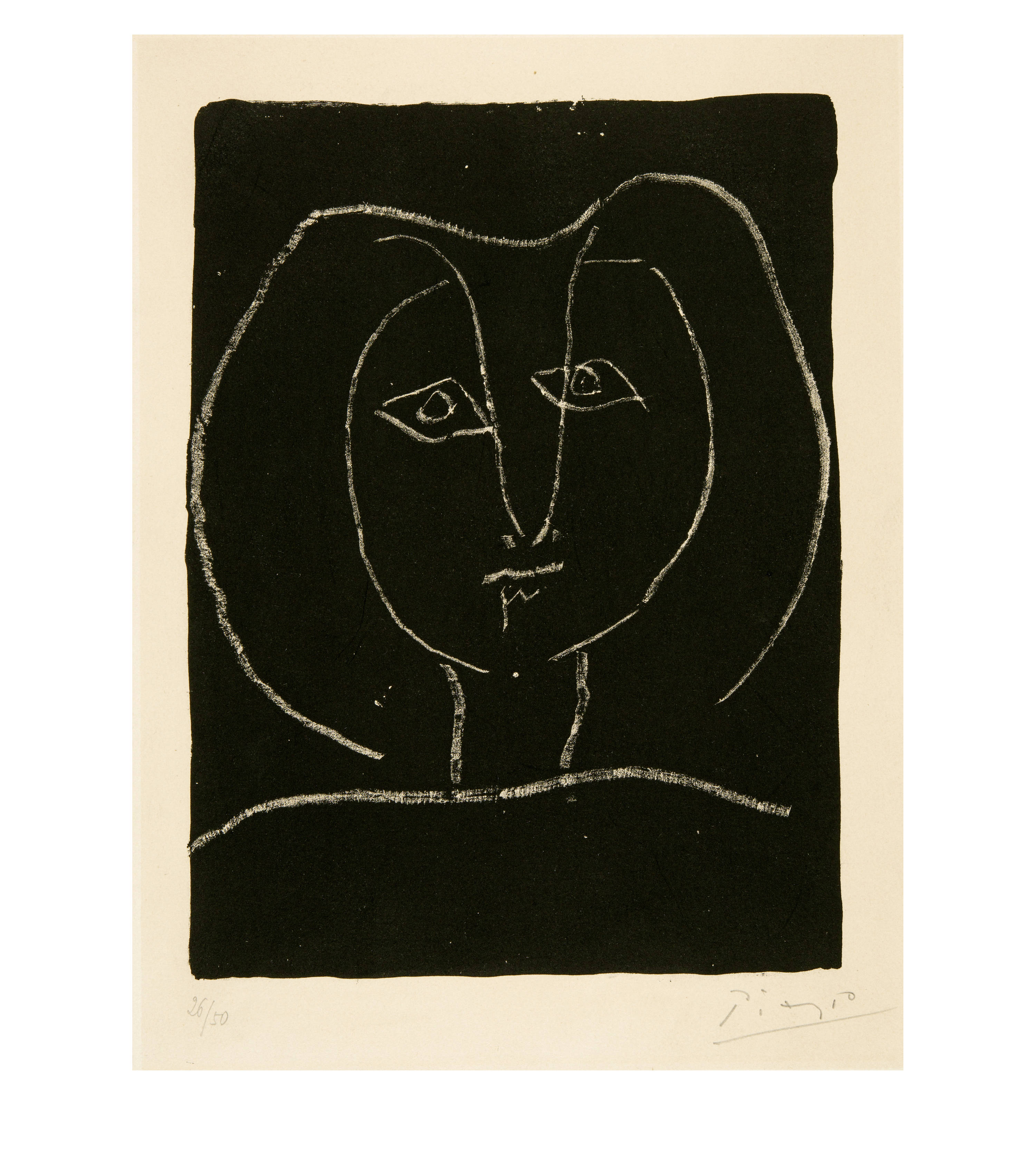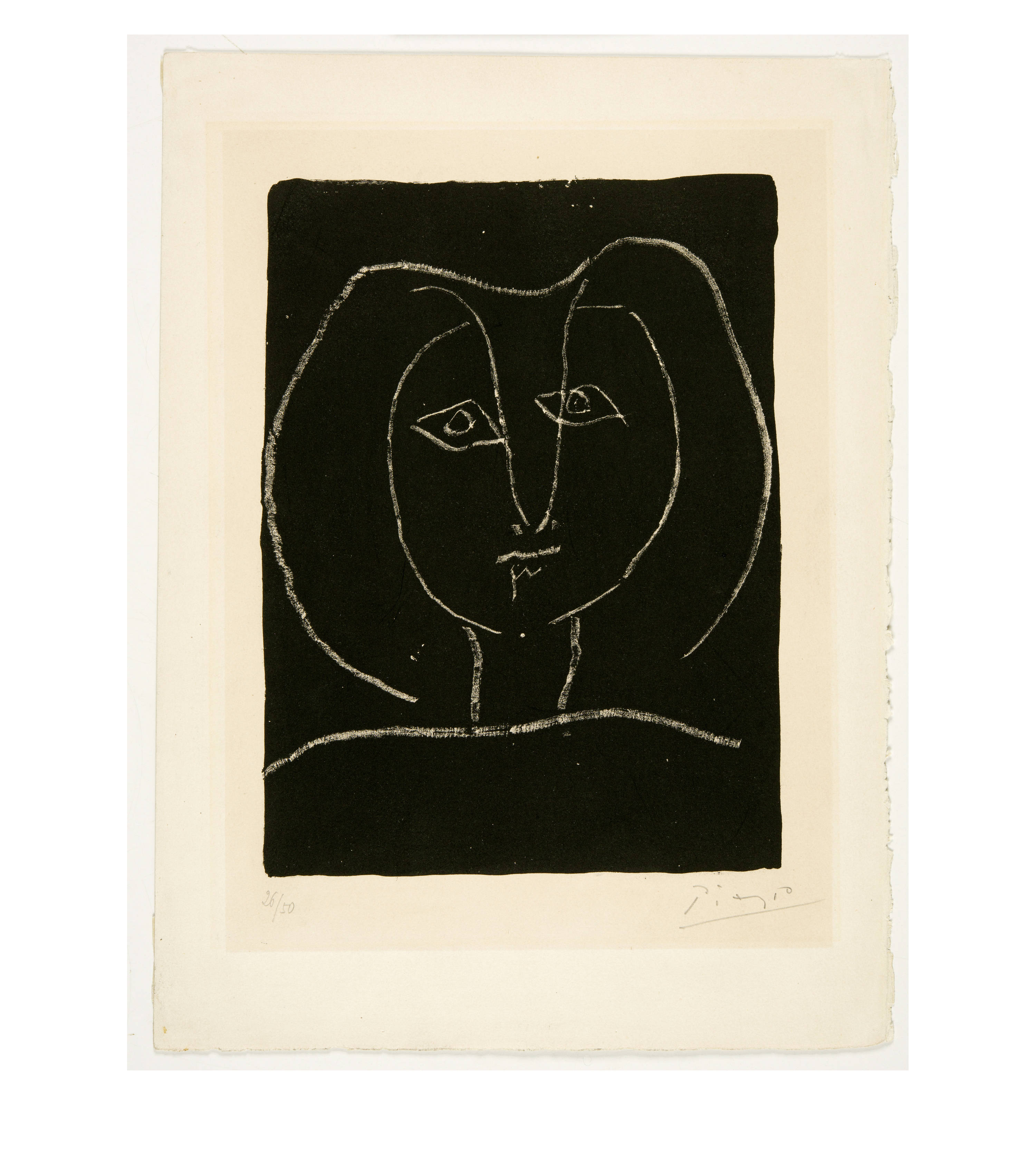 Eines der ersten Blätter, die Picasso 1945 bei Fernand Mourlot an der Pariser Rue Chabrol 18 im 9. Arrondissement schuf. Vier Monate lang arbeitete er ununterbrochen wie besessen von morgens bis abends an Druckgraphiken verschiedenster Gattungen.