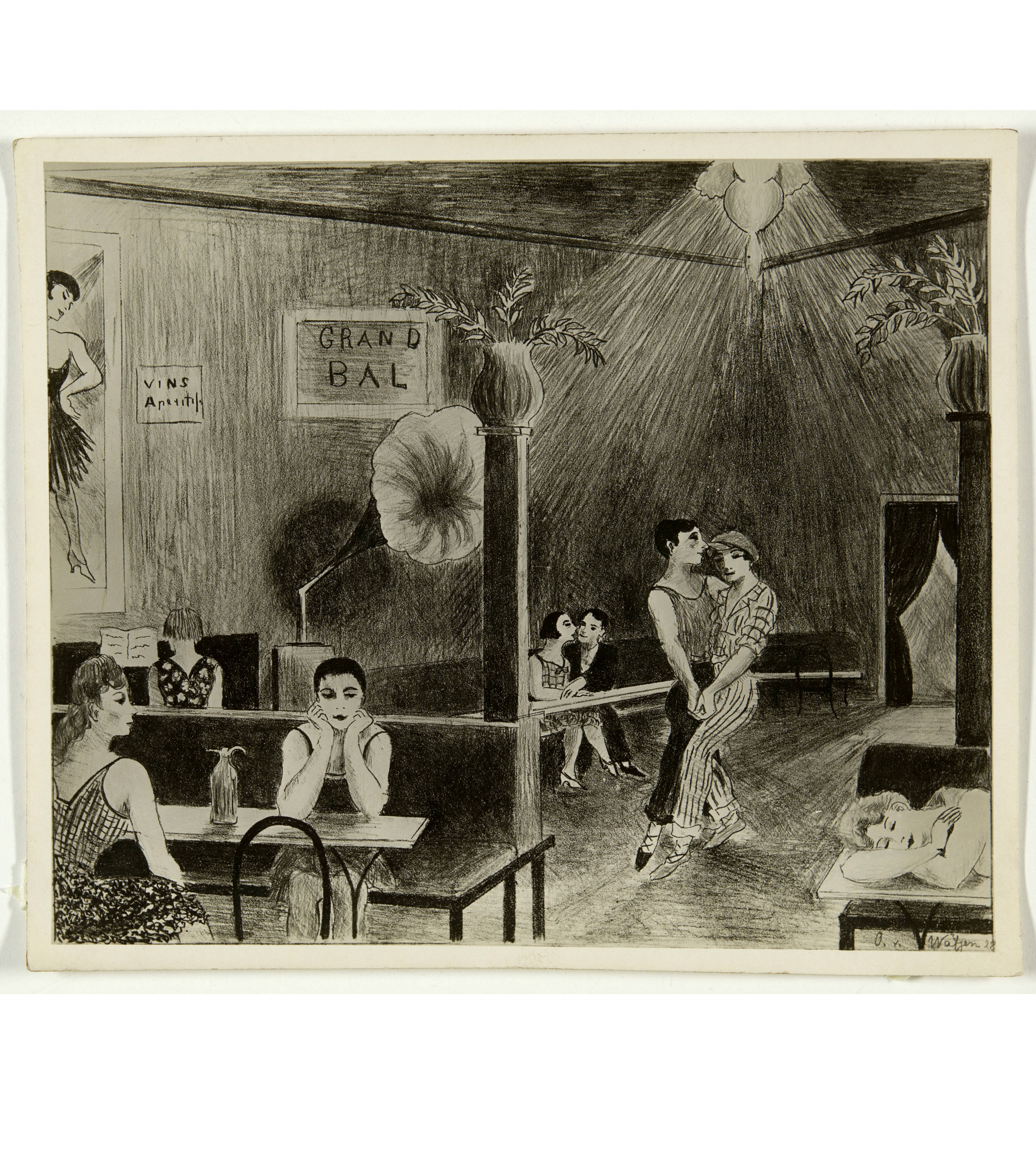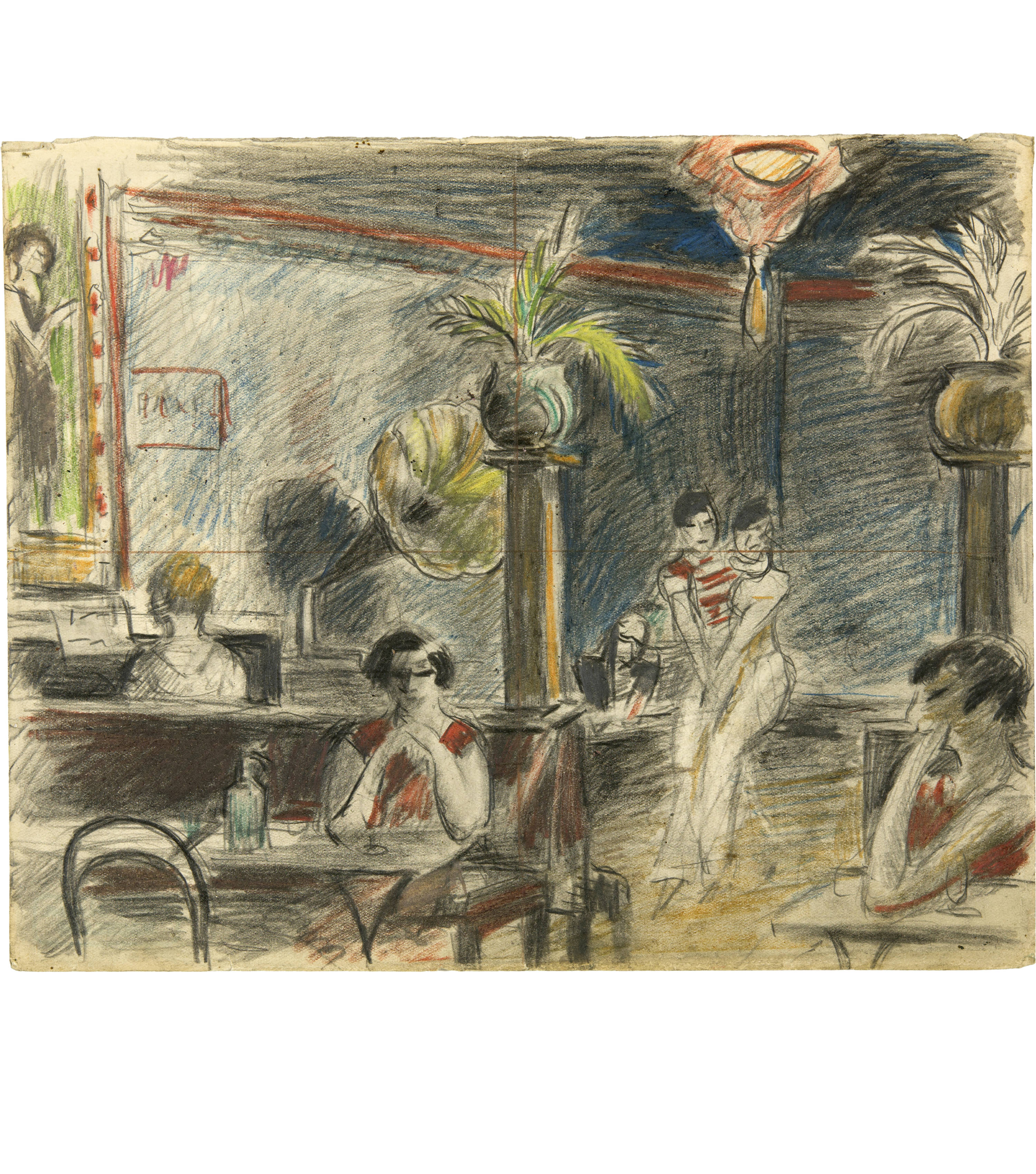 Elaborated study for the painting "Bar à Marseille", 1928, a photograph of which is enclosed with the lot, photographer Georges Allie, 151 BD du Montparnasse, Paris. Photograph inscribed and signed by the artist on the reverse, with the estate stamp "Otto v. Waetjen / NACHLASS" and the photographer's stamp.