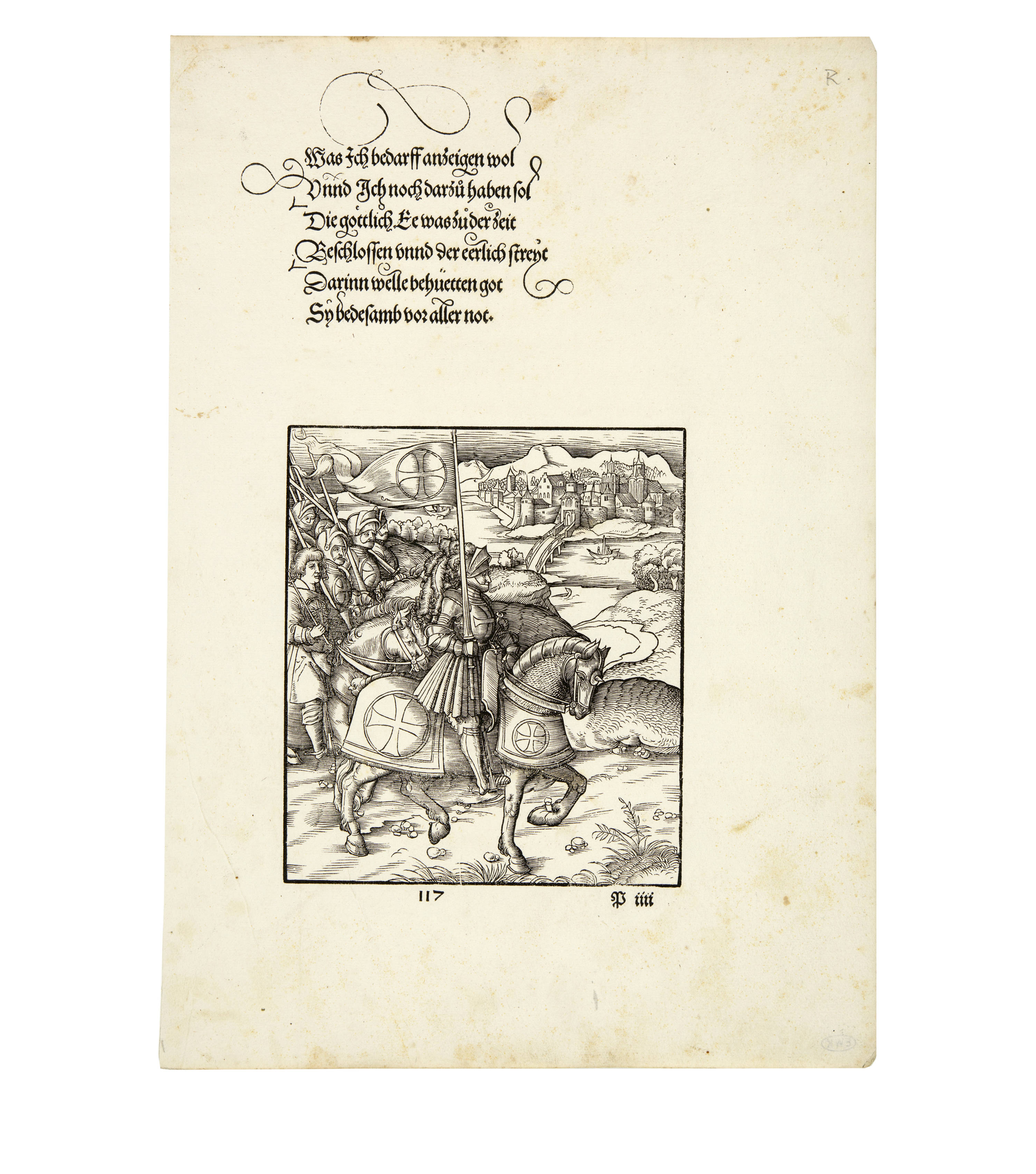 11. sheet 117 Leonhard Beck. Theuerdank sets off on a crusade against the Turks. Hollstein no. 359