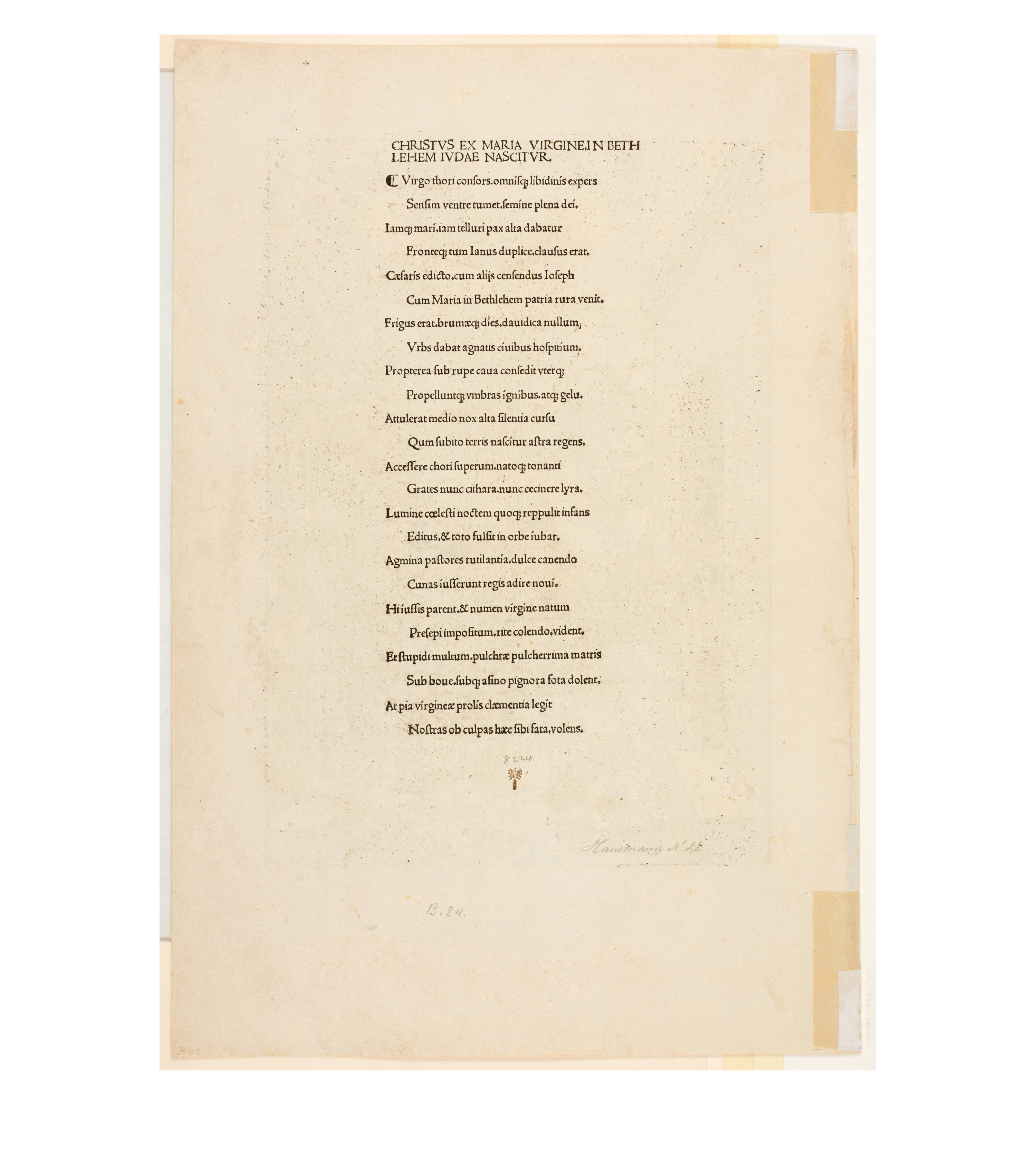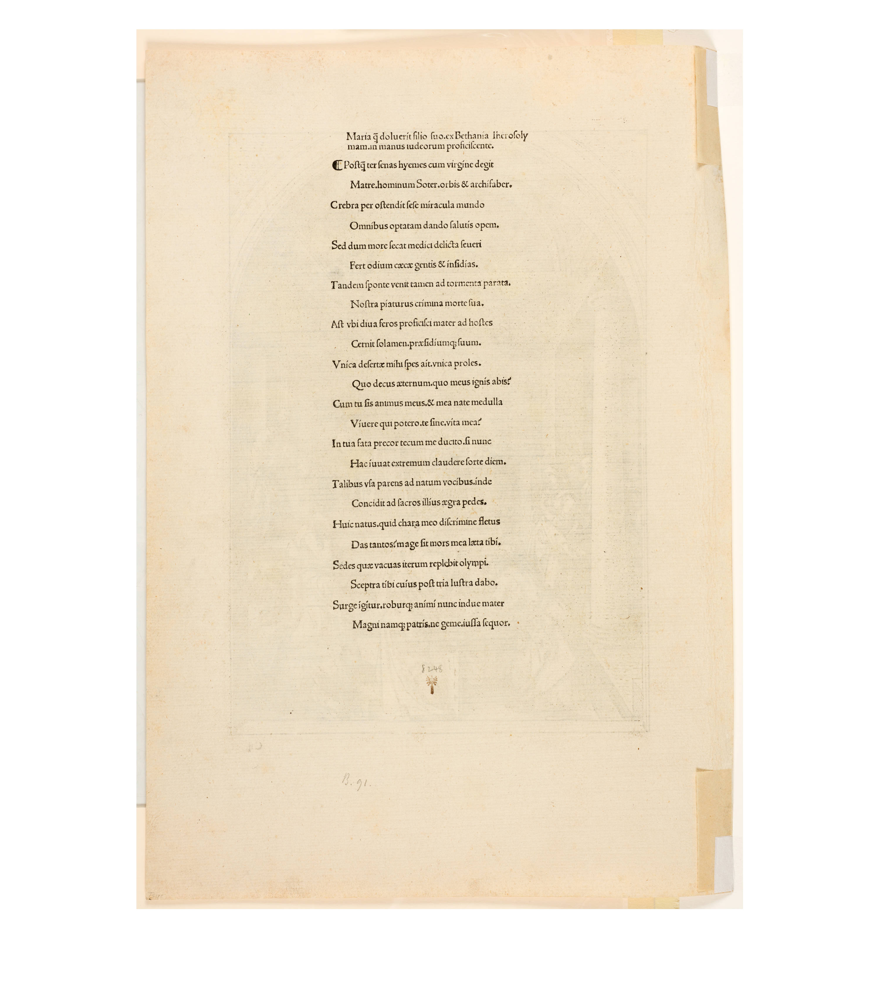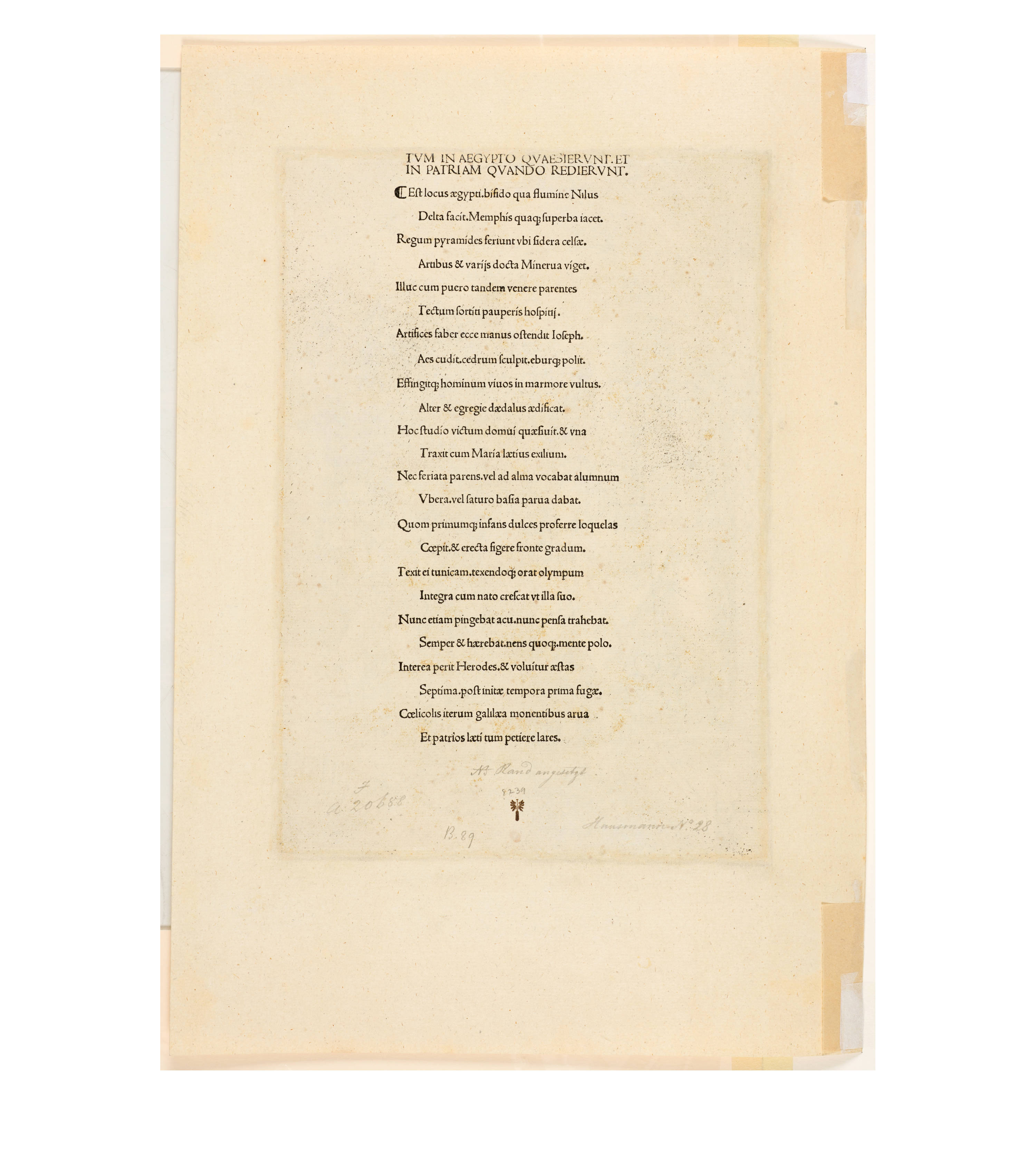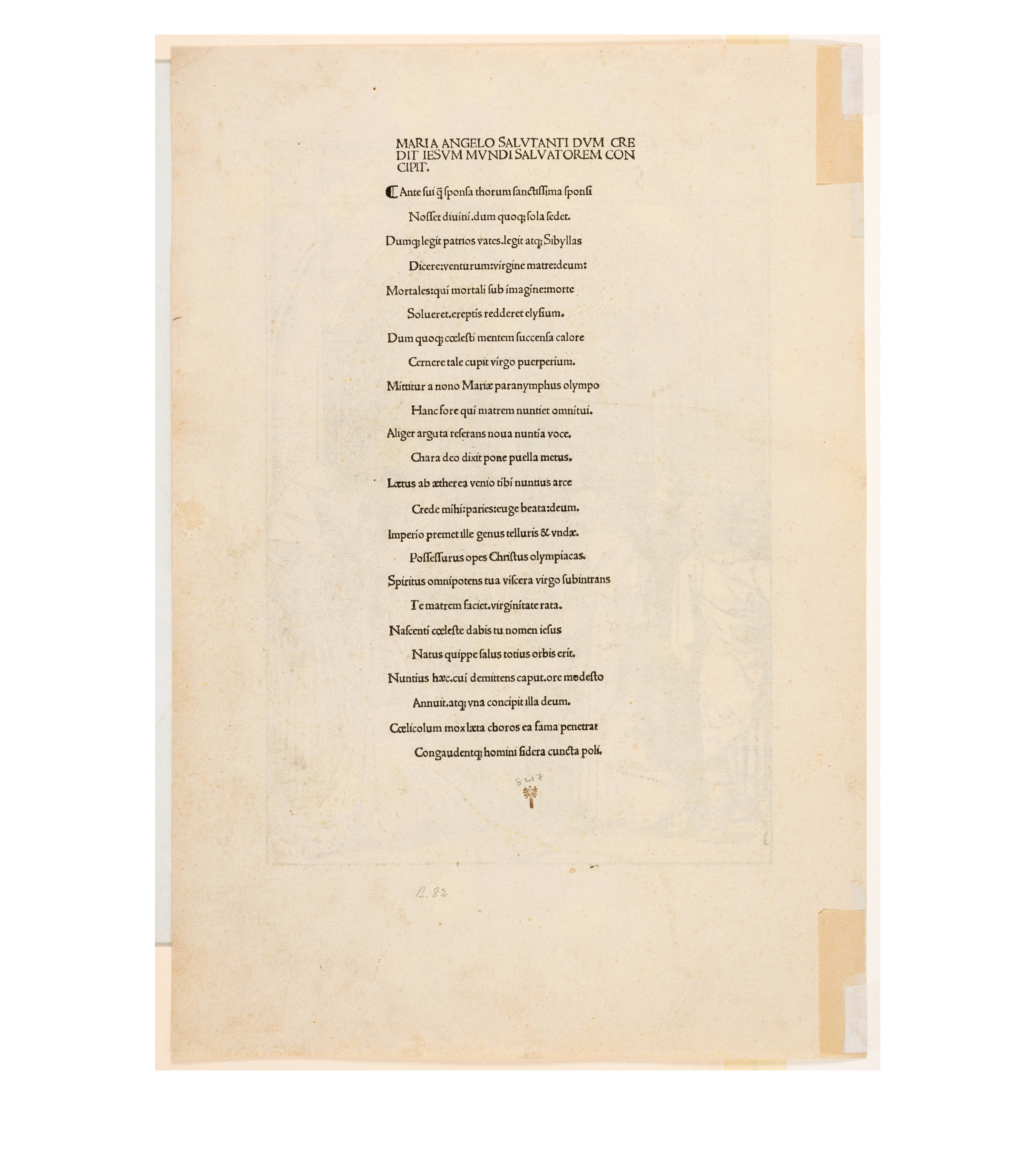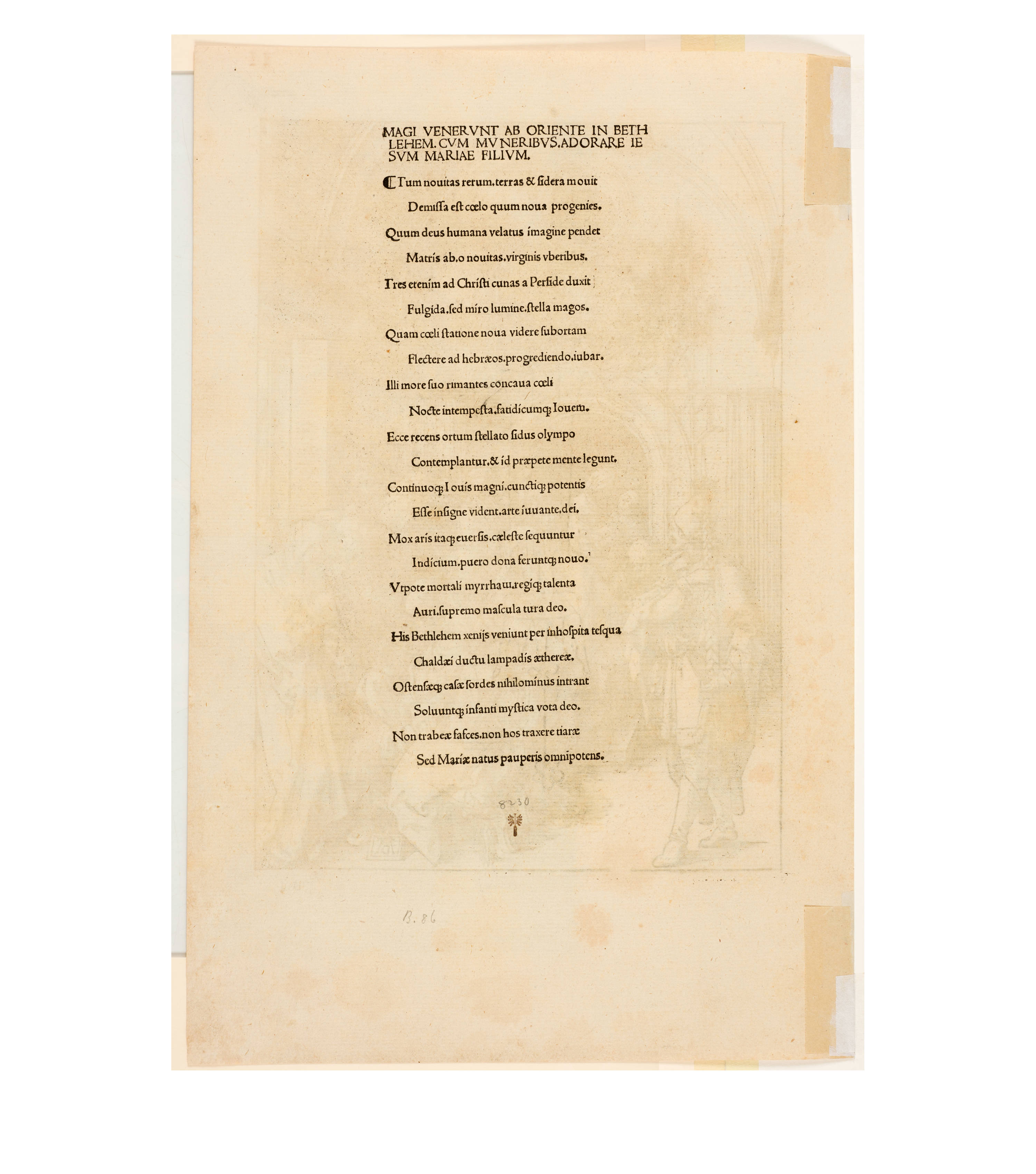 Dürer accompanied his sheets with Latin verses by Benedikt Schwalbe, a learned monk at the Benedictine monastery of St. Egidien in Nuremberg, which after 1500 was a center of humanism. In keeping with the custom of the time, he Latinized his name to "Benedictus Chelidonius" In the book version, the texts are placed opposite the respective images, so that on the reverse of the woodcuts are the descriptions of the following image. Since the life of Mary is only mentioned incidentally in the Bible, Dürer and Chelidonius turned to other sources for image and text. In particular, the apocryphal "Protoevangelium des Jakobus" attributed to the disciple James, and the "Legenda aurea" by Jacobus de Voragine should be mentioned. The latter further embellished the account of Mary's life in the Protoevangelium and placed it at the beginning of his book, before moving on to the lives and martyrdoms of numerous saints. "Das Marienleben" has long been considered the most mature creation among Dürer's woodcut series.
